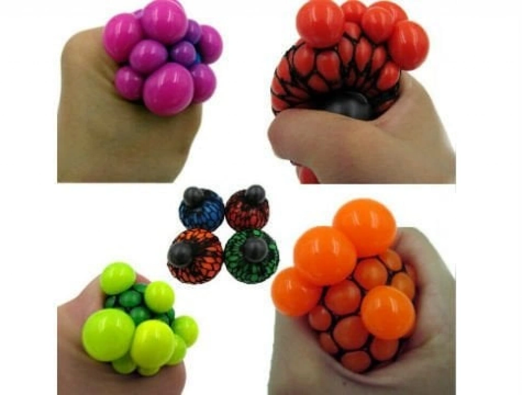 İçerisinde jel bulunan topu sıktığınızda gözenekler dolarak üzüm şeklini alacaktır. Sıkmayı bıraktığınızda tekrar eski halini alıyor.