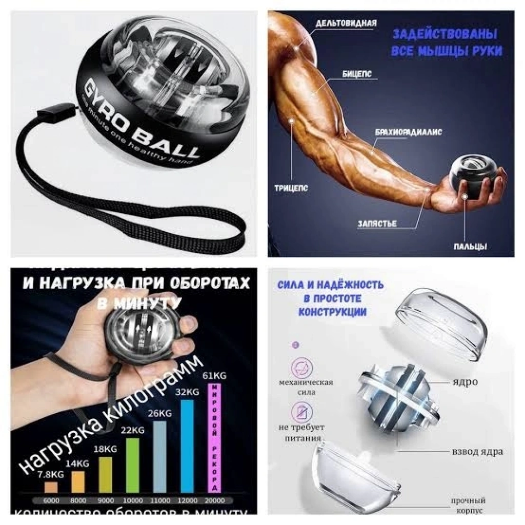 BİLEK GÜÇLENDİRME ALETİPower Wrist Ball Gyro BallPower Wrist Ball, genellikle bilek güçlendirme ve rehabilitasyon amacıyla kullanılan bir fitness cihazıdır. İçeriği, dayanıklı bir topun içinde yer alan bir mekanizma, bir döner çark veya top içindeki bir rotor içerir. Kullanıcı, bu topu elinde çevirerek bilek, el ve kol kaslarını güçlendirir.Ürünün içeriği, dayanıklı plastik, metal veya hafif alaşımlardan yapılmış bir dış gövdeyi içerir. İç mekanizma, bir yay, rulmanlar ve bir rotor içerir. Kullanıcı, bileğini kullanarak topu çevirirken, iç mekanizma da döner, böylece dirençle çalışarak kasları güçlendirir.Bu fitness cihazı genellikle bilek kaslarını güçlendirmek, el becerisini artırmak ve bilek sorunlarına karşı rehabilite etmek için kullanılır. Kullanıcılar genellikle topu çevirirken dirence karşı çalışmak zorundadır, bu da kas gücünü artırıcı bir etki yaratır.Paket İçeriği1 adet bilek güçlendirme aleti gyro ball