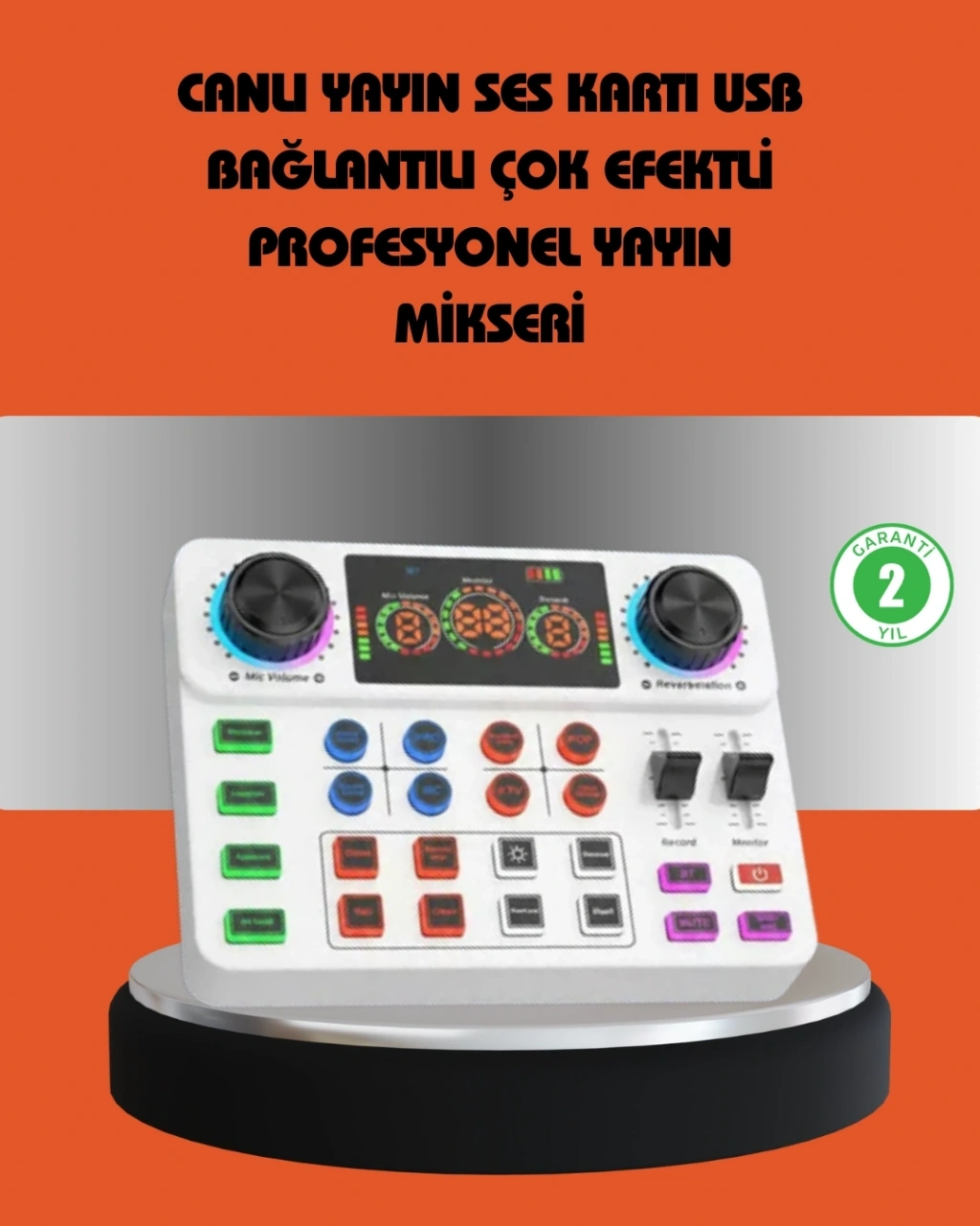 Profesyonel canlı yayın ses kartı, sosyal medya yayınları, karaoke, podcast ve online içerik üretimi için kapsamlı bir ses çözümü sunar. Kompakt yapısı, güçlü özellikleri ve pratik kullanımı ile öne çıkar.Hazır efektler, gürültü engelleme ve gecikmesiz monitörleme gibi özellikler, yayın kalitesini doğrudan artırır. Bluetooth ve USB uyumluluğu sayesinde geniş kullanım alanı sunar.Yayınlarını daha profesyonel, daha net ve daha eğlenceli hale getirmek isteyen herkes için ideal bir ses kartıdır.