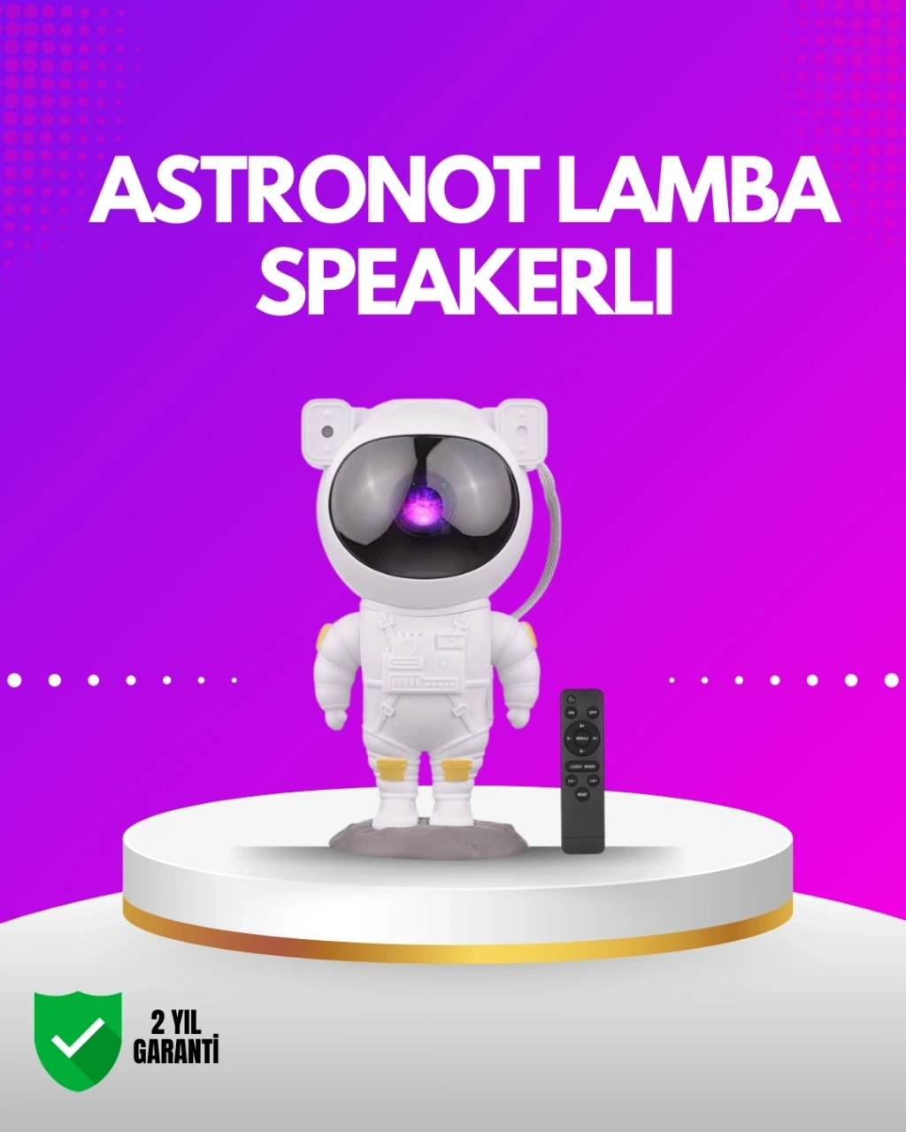 Astronot Projeksiyon Lambası, görsel efektleri ve çok yönlü özellikleriyle evde, ofiste veya etkinliklerde atmosferi tamamen değiştiren özel bir aydınlatma ürünüdür. Yüksek kaliteli nebula, yıldız ve ay projeksiyonları sayesinde duvarlarınıza ve tavanınıza adeta uzayın derinliklerini yansıtır. Hız ve parlaklık ayarları ile istediğiniz yoğunlukta ışık sağlayabilir, hem tek tek hem de birlikte kullanarak farklı kombinasyonlar oluşturabilirsiniz. Bluetooth bağlantısı ile telefonunuzdan ya da tabletinizden müzik çalabilir, dahili kuş cıvıltısı, dalga sesi, şömine ateşi ve uyku müzikleri ile rahatlatıcı bir ortam yaratabilirsiniz. İki farklı zamanlama modu (45 ve 90 dakika) ile cihazı uyku öncesinde güvenle kullanabilir, otomatik kapanma özelliği sayesinde enerji tasarrufu sağlayabilirsiniz. Ayarlanabilir projeksiyon açısı, ışığı tam istediğiniz alana yönlendirmenizi sağlar. USB güç kaynağı ile çalışır ve ABS + PC + PVC + TPE malzemelerden üretilmiştir. Hem modern hem de eğlenceli tasarımı sayesinde çocuk odaları, yatak odaları, meditasyon alanları ve parti ortamları için uygundur.