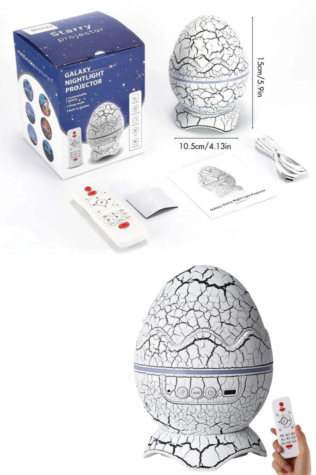 Dinazor Yumurtası tasarımıyla dikkat çeken bu ışık projektörü, sadece çocuklar için değil, oturma odasında da şık bir aksesuar olarak kullanılabilir. Farklı ortamlarda rahatlıkla kullanılabilecek bir atmosfer yaratmak için ideal bir üründür. İster romantik bir akşam, ister parti, ister çocuklarla oyun oynarken ya da film izlerken, her anı daha özel hale getirebilir. 5W enerji tüketimi ve düşük güç gereksinimi ile uzun süreli kullanım sağlar. Ayrıca, USB kablosu ile çalıştığından, çeşitli cihazlara bağlanabilir. Sürdürülebilir malzemelerle üretilmiş olan bu ürün, dayanıklılığı ve kaliteli yapısıyla uzun süreli kullanım sunar.