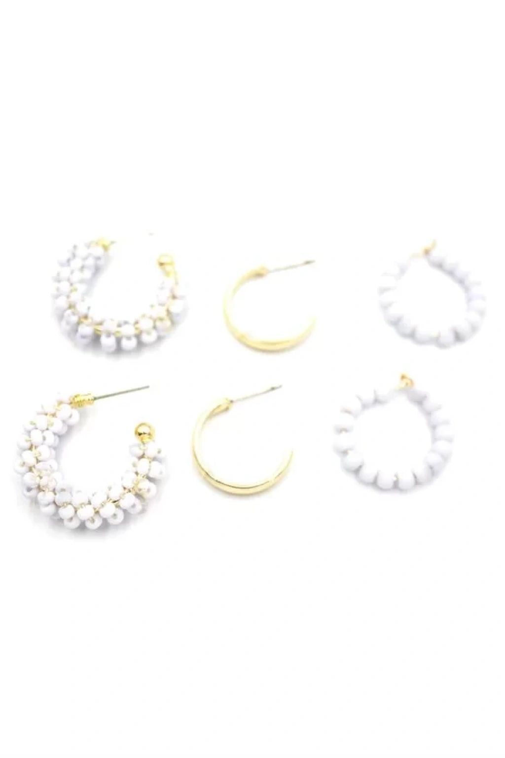 Boncuklu Küpe Seti - Beyaz