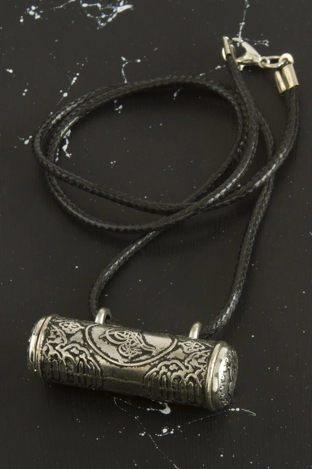 Boru Cevşen Deri Kordonlu Kolye