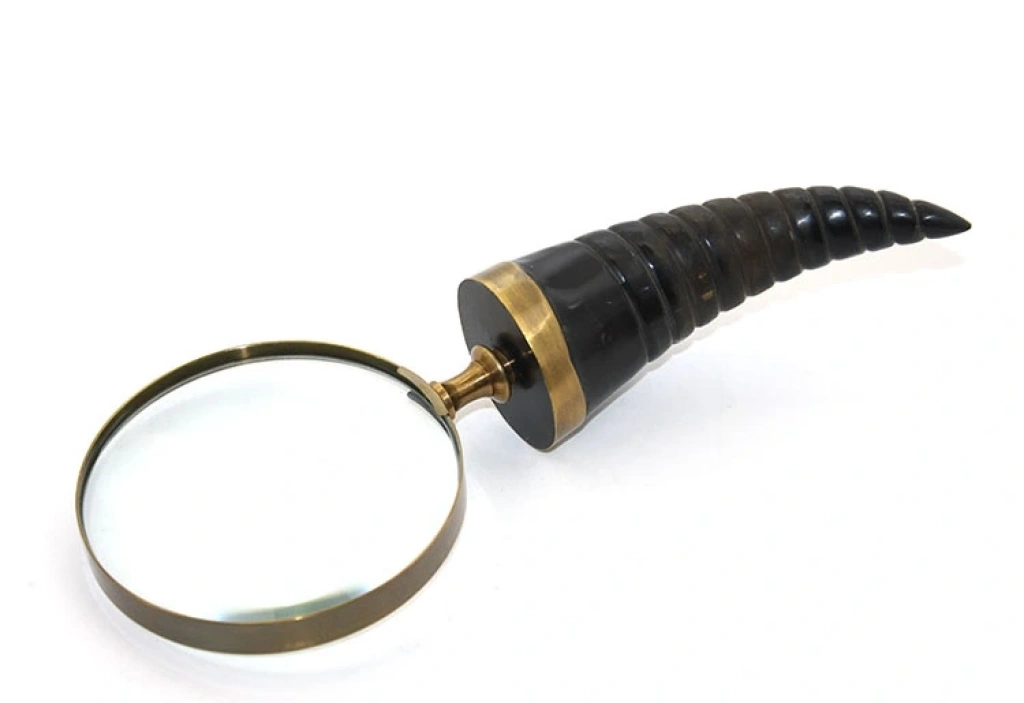 BOYNUZ PIRINÇ BÜYÜTEC MODEL 2Ürün ÖzellikleriBoynuz Pirinç Büyüteç Model 2, modern ve şık bir tasarıma sahip olup, doğal boynuzdan yapılmış sapı ve pirinç çerçevesi ile dikkat çeker. Geniş büyütme alanı sunarak ayrıntıları net bir şekilde görmenizi sağlar. Boynuzun doğal dokusu ve pirinç sapı, ürüne zarif bir görünüm kazandırır. Hem işlevsel hem de dekoratif bir öğe olarak kullanılabilir. Koleksiyonluk bir parça olarak değerlendirilebileceği gibi, ofis ve ev dekorasyonuna da şıklık katar.Paket İçeriği1 Adet Boynuz Pirinç Büyüteç Model 2