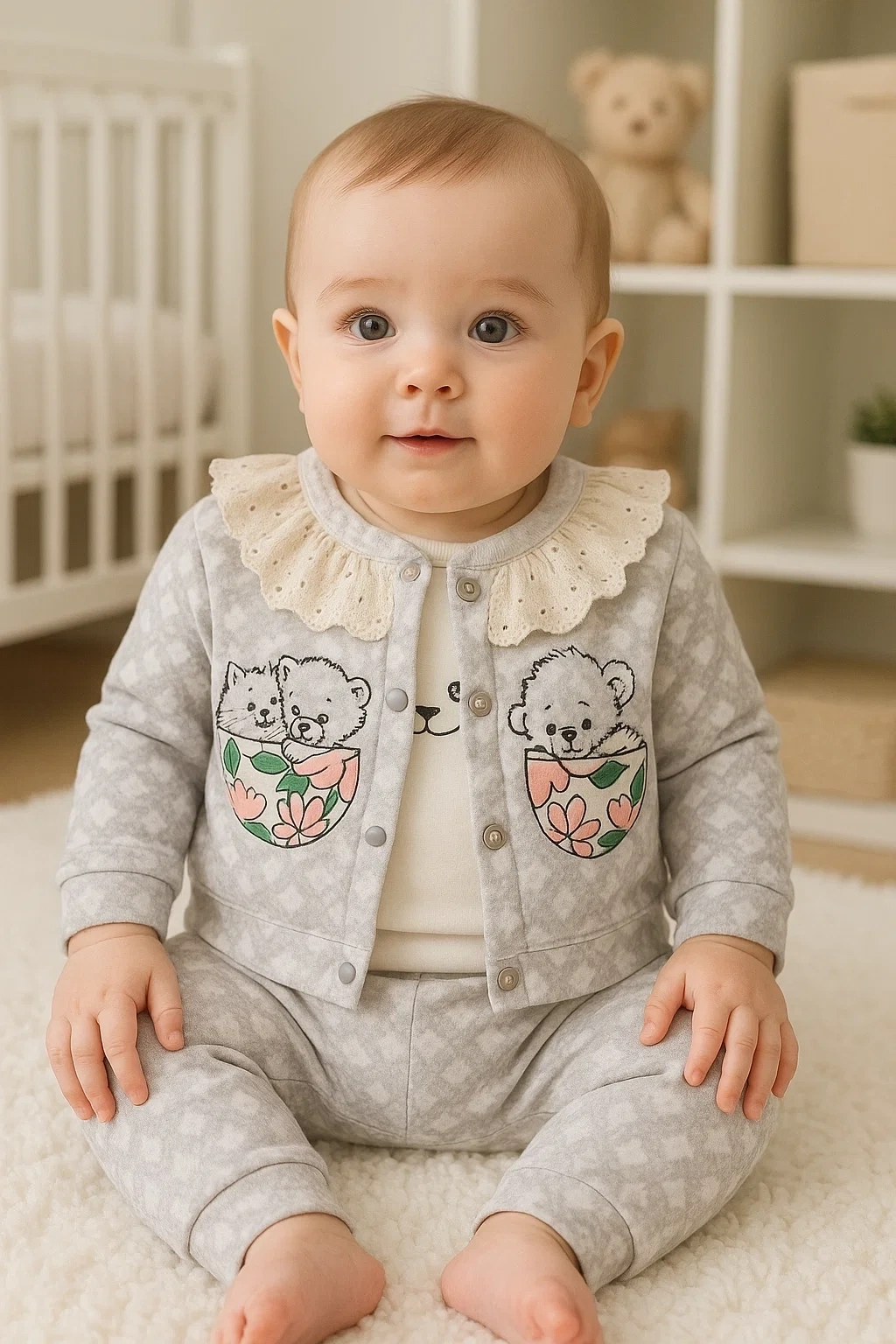 Babydonat Yelekli 3 lü Kız Bebek Takım