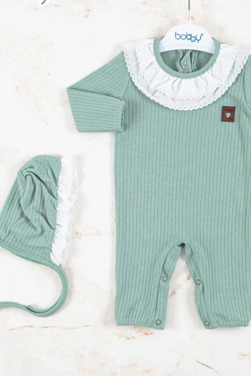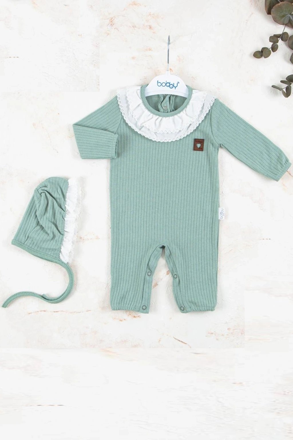 Brode Nakışlı Şapkalı % 100 Pamuk Kız Bebek Tulumu