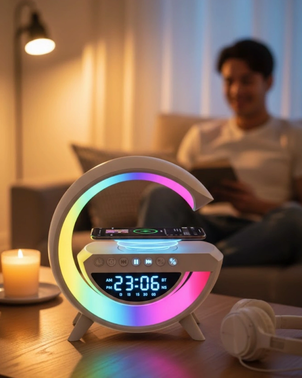 Kablosuz RGB hoparlör, sade kullanım yapısı ve dikkat çekici tasarımıyla günlük müzik deneyimini zenginleştirir. Kırmızı tonlu RGB aydınlatma, ortama enerjik bir hava katar ve ürünü dekoratif bir unsur haline getirir. Modern ve kompakt yapısı sayesinde farklı alanlarda rahatlıkla kullanılabilir.Bluetooth bağlantı özelliği, akıllı telefonlar ve diğer cihazlarla hızlı eşleşme sağlar. Kablosuz kullanım, müzik dinlerken konfor sunar. USB, FM radyo ve TF kart desteği sayesinde farklı müzik kaynakları kullanılabilir. Bu özellik, kullanıcıya geniş bir medya erişimi sağlar.AUX girişi, harici ses kaynaklarıyla uyumlu çalışmasına olanak tanır. Çoklu bağlantı seçenekleri, hoparlörü farklı kullanım senaryolarına uygun hale getirir. Ev, ofis ve kişisel alanlarda rahatlıkla tercih edilebilir.5–10 saat arasında değişen kullanım süresi, günlük müzik dinleme ihtiyaçlarını karşılar. Uzun süreli performans, kesintisiz eğlence sağlar. Suya veya tere dayanıklı olmaması nedeniyle normal günlük kullanım için uygundur.RGB aydınlatma sistemi, müzik dinlerken ortamda hoş bir ambiyans oluşturur. Işık efektleri, görsel bir şölen sunarken ses performansı ile birlikte keyifli bir deneyim yaşatır. Şık tasarımı, çoklu bağlantı seçenekleri ve pratik kullanımı ile öne çıkan bu hoparlör, günlük kullanım için ideal bir tercihtir.