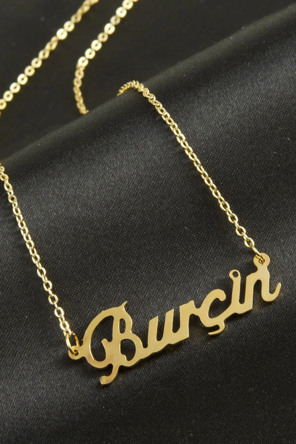 Burçin isimli kolye. İsimli kolye pirinç madeninden ve altın kaplamalıdır. Kişiye özel üretilmektedir.Yazdırmak istediğiniz ismi bize mesaj olarak iletmeniz gerekmektedir. Kullanıma bağlı olarak uzun süre kullanıma uygundur. Ürün malzemesi 1.sınıf kalitededir. Ürün ve zinciri sarı renktedir. Ürün zincir boyu 45 cm ve ürün üzerindeki isimler yaklaşık 3 cmdir. İsim boyları ürün ismine göre degişiklik göstermektedir.