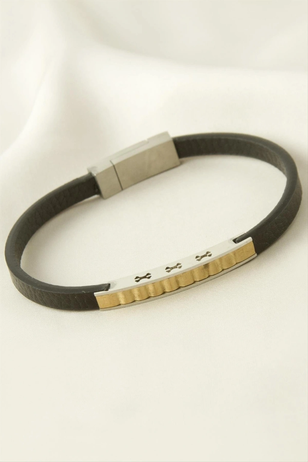 Burgulu Deri Çelik Bileklik