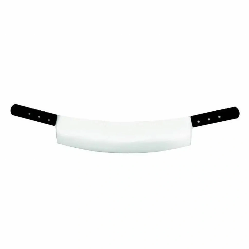 4. Çift Saplı Tasarım: Bıçağın çift saplı tasarımı, ekstra denge ve kontrol sağlar. İki sap, bıçağın kullanımını daha rahat hale getirir, özellikle büyük et parçalarını keserken ekstra kontrol ve stabilite sunar. Saplar ergonomik olarak tasarlanmış olup elinize mükemmel şekilde oturur ve uzun süreli kullanımlarda bile konfor sağlar. Genellikle kaymaz özellikte olan saplar, güvenli bir tutuş sağlar.