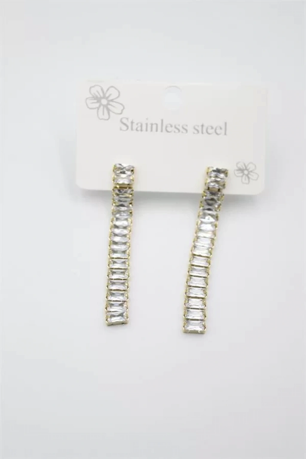 Büyük Baget Taşlı Çelik Küpe - Altın