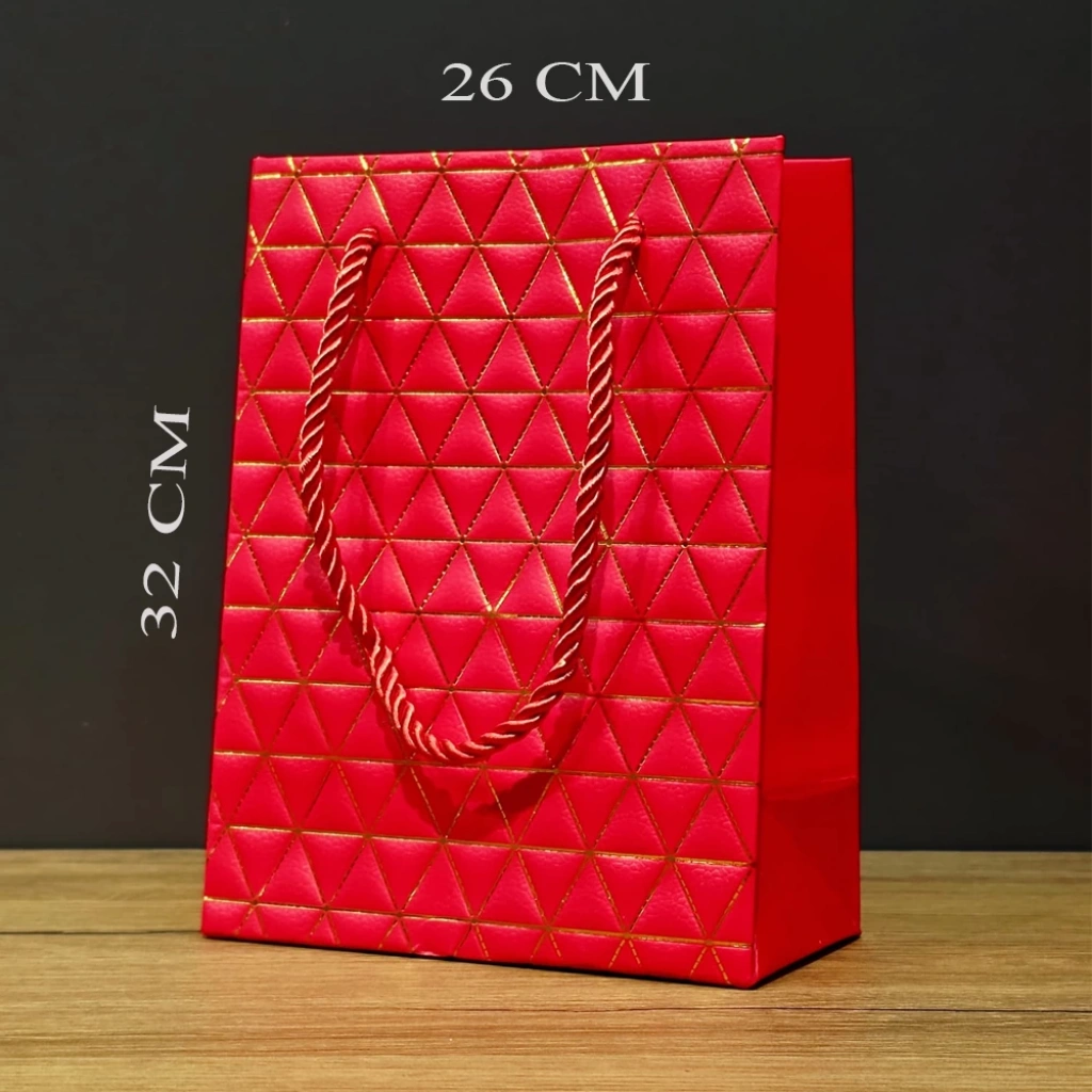 Büyük Boy Kırmızı Gold Desenli Hediye Çantası