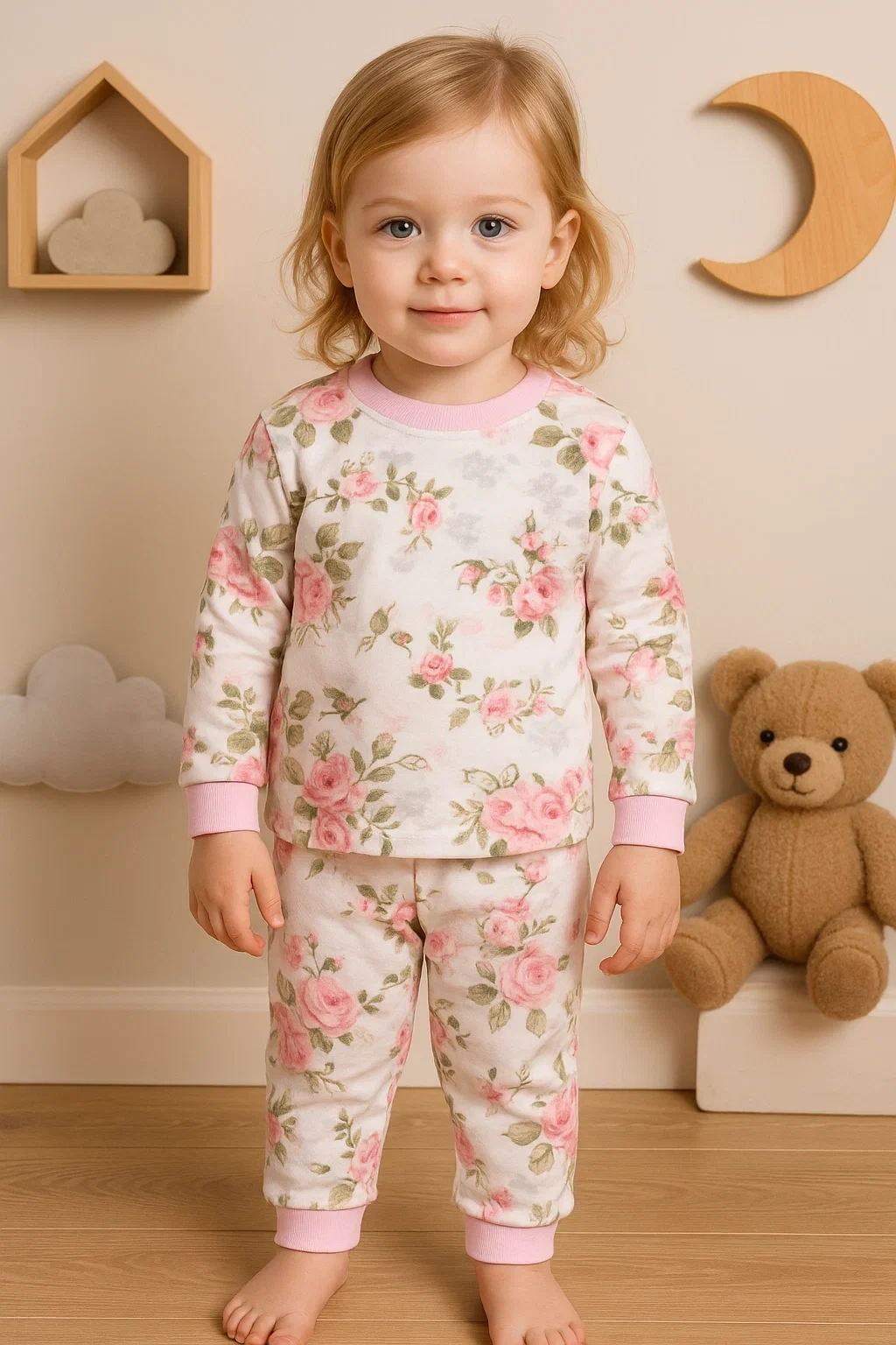 Çiçek Desenli Kız Bebek Eşofman Takımı %100 Pamuk