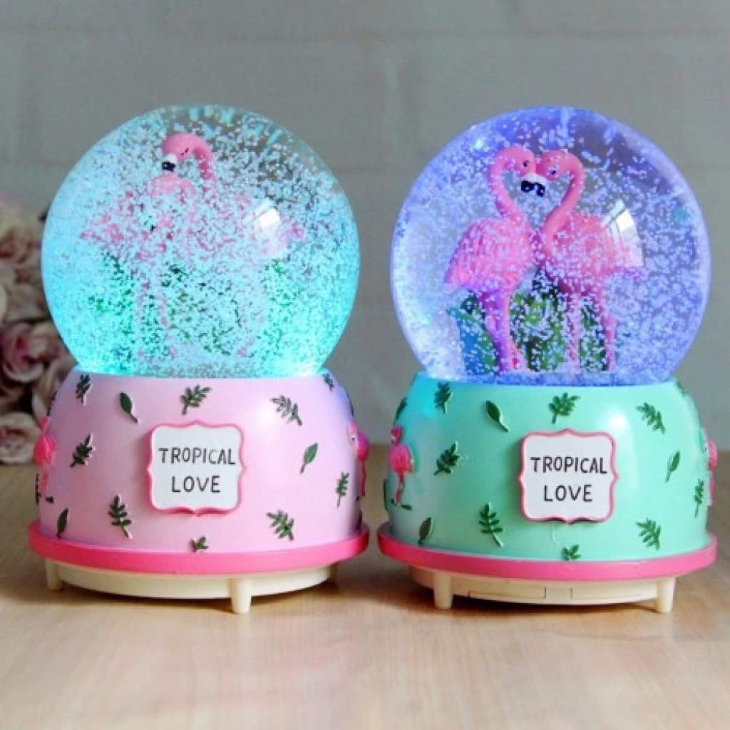 Büyük Flamingo Kar KüresiBüyük boy kar küresi içinde bulunan sevimli flamingolar ile kar küresi daha şık bir görünüme sahip olmuşlardır.Kar küresi tasarımı ve görünümü oldukça dikkat çekmekte olup çocuktan yetişkine herkese verebileceğiniz hediyelik kar küresidir.Büyük kar küresi karanlıkta çalıştırdığınız zaman hoş bir görünüm ve kar tanecikleri ile müzik çalmaya başlar.Doğum günü gibi özel günlerde verebileceğiniz şık kar kürelerinden.Toptan büyük flamingo kar küresi sevdiklerinize verebileceğiniz tatlı hediyelerden.Masanızda ofisinizde tv ünitenizde istediğiniz yerde kullanabileceğiniz dekoratif ürünlerden. Flamingo Püskürtmeli Kar Küresi Özellikleri:* Fanus kalın kaliteli cam malzemeden üretilmiştir.* Alt kısmı sert polyester malzemeden üretilmiştir.* Alt kısmındaki açma kapama düğmesi ile çalıştırabilir veya kapatabilirsiniz.* Ürünü açtığınız zaman müzik çalmaya başlar aynı zamanda renk değiştirir.* Kar tanecikleri motor çalıştığı zaman hareket eder.* Karışık model gönderilmektedir.* 3 adet AAA pil ile çalışır. (Piller pakete dahil değildir.) Flamingo Kar Küresi Ölçüsü:18 cm x 9.5 cm x 9.5 cm