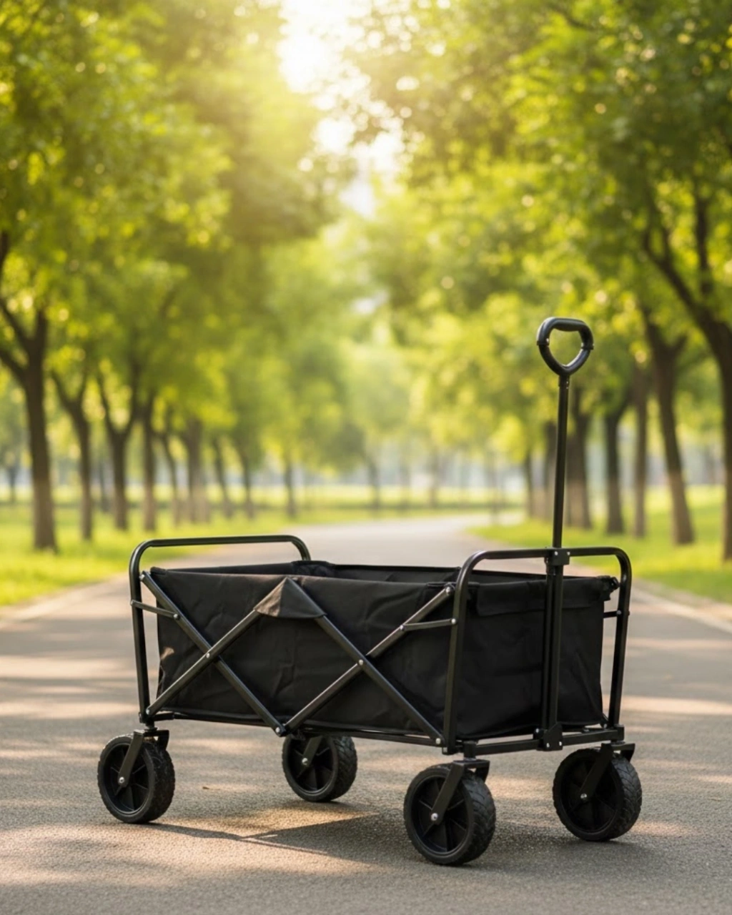 Büyük Kapasiteli Katlanır Kamp Arabası, eşyaların tek seferde ve zahmetsiz şekilde taşınmasını sağlamak aıyla geliştirilmiştir. Kamp, plaj, bahçe ve alışveriş gibi farklı alanlarda kullanıma uygun olan bu vagon, günlük yaşamı kolaylaştıran çok yönlü bir yardımcıdır.Katlanabilir tasarımı, ürünü taşınabilir ve depolanabilir hale getirir. Kullanım sonrasında hızlıca kapatılarak kompakt boyuta ulaşır. Araç bagajında veya evde fazla yer kaplamadan saklanabilir. Kurulum gerektirmemesi sayesinde pratik bir kullanım sunar.Geniş iç alanı ve 74,8 kg taşıma kapasitesi, büyük ve ağır eşyalar için idealdir. Kamp malzemeleri, soğutucu kutular veya bahçe ekipmanları rahatlıkla taşınabilir. Yan cepler küçük eşyaların düzenli biçimde yerleştirilmesine yardımcı olur.360° dönebilen ön tekerlekler, her yönde rahat hareket imkânı tanır. Farklı zemin koşullarında dengeli sürüş sağlar. Ayarlanabilir ve kilitlenebilir kulp, kullanım sırasında kontrol kolaylığı sunar.Dayanıklı çelik iskeleti ve 600D Oxford kumaşı sayesinde uzun süreli kullanım için uygundur. Kumaş çıkarılabilir ve kolay temizlenebilir yapıdadır.Büyük Kapasiteli Katlanır Kamp Arabası, taşıma işlerini daha pratik ve konforlu hale getirmek isteyen kullanıcılar için ideal bir çözümdür.