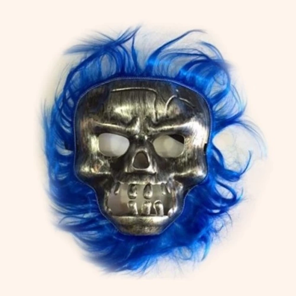Cadılar Bayramı Maskesi LacivertÜRÜN DETAYLARICadılar Bayramı Kurukafa MaskesiMaskenin etrafı lacivert saçlarla çevrilmiştirKaliteli plastik malzemeden üretilmiştirStandart Yetişkin ve Çocuk Uyumlu Lastik aparatı sayesinde yüze tam oturur