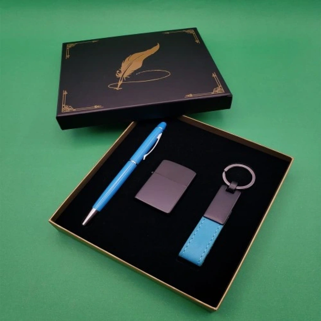Çakmak, Anahtarlık ve Tükenmez Kalem Seti Özel kutusunda sunulan Toptan Çakmak, Anahtarlık ve Tükenmez Kalem Seti (Turkuaz), şık tasarımıyla dikkat çeken ve kişiye özel ya da promosyon amaçlı tercih edilebilecek bir üründür. Mat siyah çakmak ve turkuaz kalem ile uyumlu anahtarlık, hem hediye hem de kurumsal kullanım için idealdir. Kutusunu istediğiniz gibi süsleyebilir ve içine küçük hediyeler ekleyerek daha özel hale getirebilirsiniz.Set, öğretmenler günü, babalar günü, anneler günü ve sevgililer günü gibi özel günlerde sevdiklerinize verebileceğiniz anlamlı bir hediyedir. Toplu alımlarda lazer baskı, lazer kazıma veya lazer markalama gibi kişiye özel uygulamalarla promosyon ürünleri olarak da kullanılabilir.Ürün ÖzellikleriSet içeriği: Mat siyah çakmak, turkuaz tükenmez kalem ve uyumlu anahtarlık.Özel kutulu ve dekoratif tasarım.Kişiye özel özelleştirme imkanı (lazer baskı, kazıma, markalama).Promosyon ve toplu alım için uygun.Öğretmenler günü, babalar günü, anneler günü ve sevgililer günü için hediye seçeneği.Kullanım AlanlarıKişiye özel hediye.Kurumsal promosyon ürünleri.Özel gün ve etkinlik hediyesi.