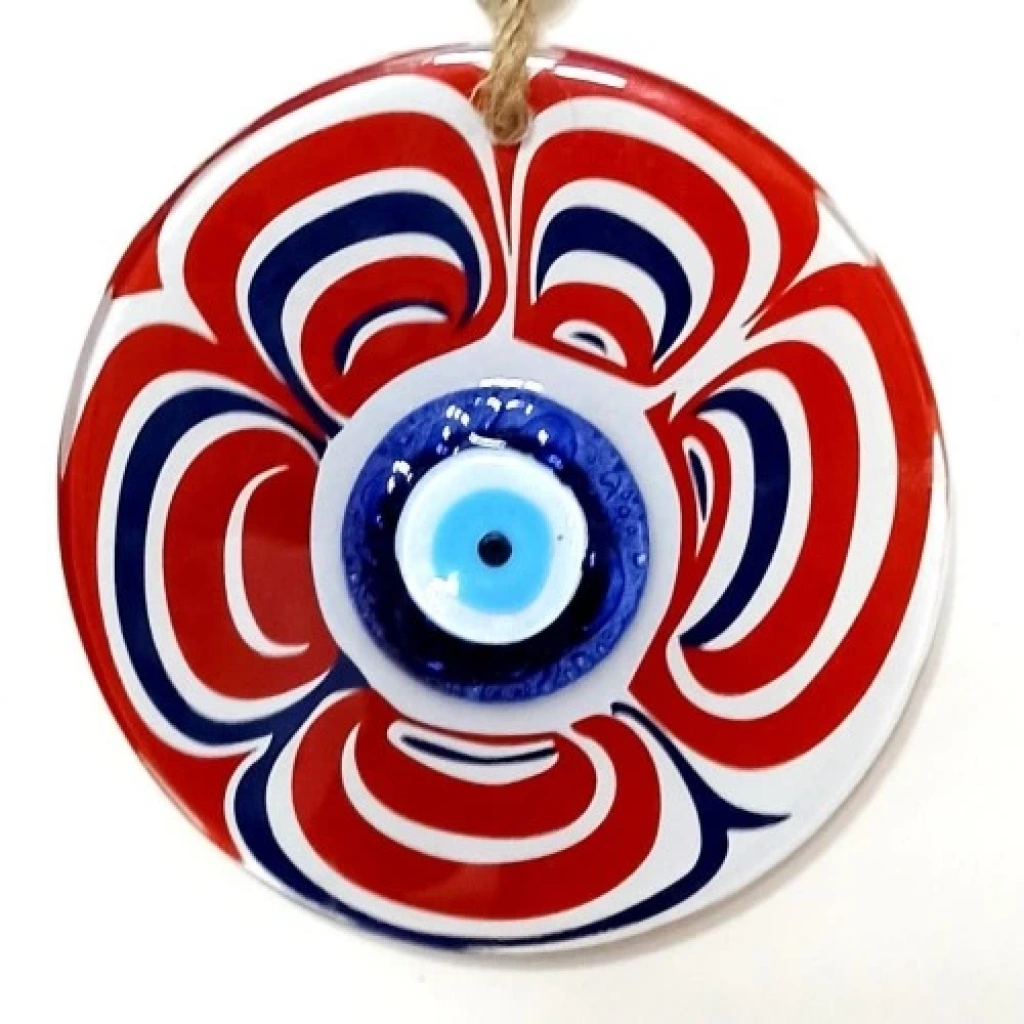 Cam Nazar Boncuklu Kırmızı Şeker Modelli Duvar Süsü