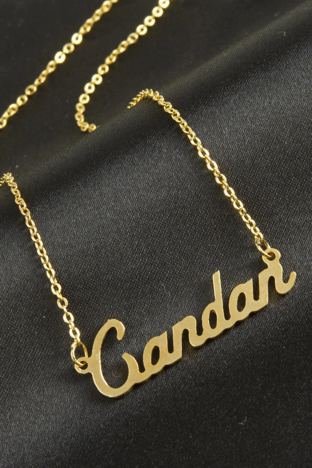 Candan isimli kolye. İsimli kolye pirinç madeninden ve altın kaplamalıdır. Kişiye özel üretilmektedir.Yazdırmak istediğiniz ismi bize mesaj olarak iletmeniz gerekmektedir. Kullanıma bağlı olarak uzun süre kullanıma uygundur. Ürün malzemesi 1.sınıf kalitededir. Ürün ve zinciri sarı renktedir. Ürün zincir boyu 45 cm ve ürün üzerindeki isimler yaklaşık 3 cmdir. İsim boyları ürün ismine göre degişiklik göstermektedir.