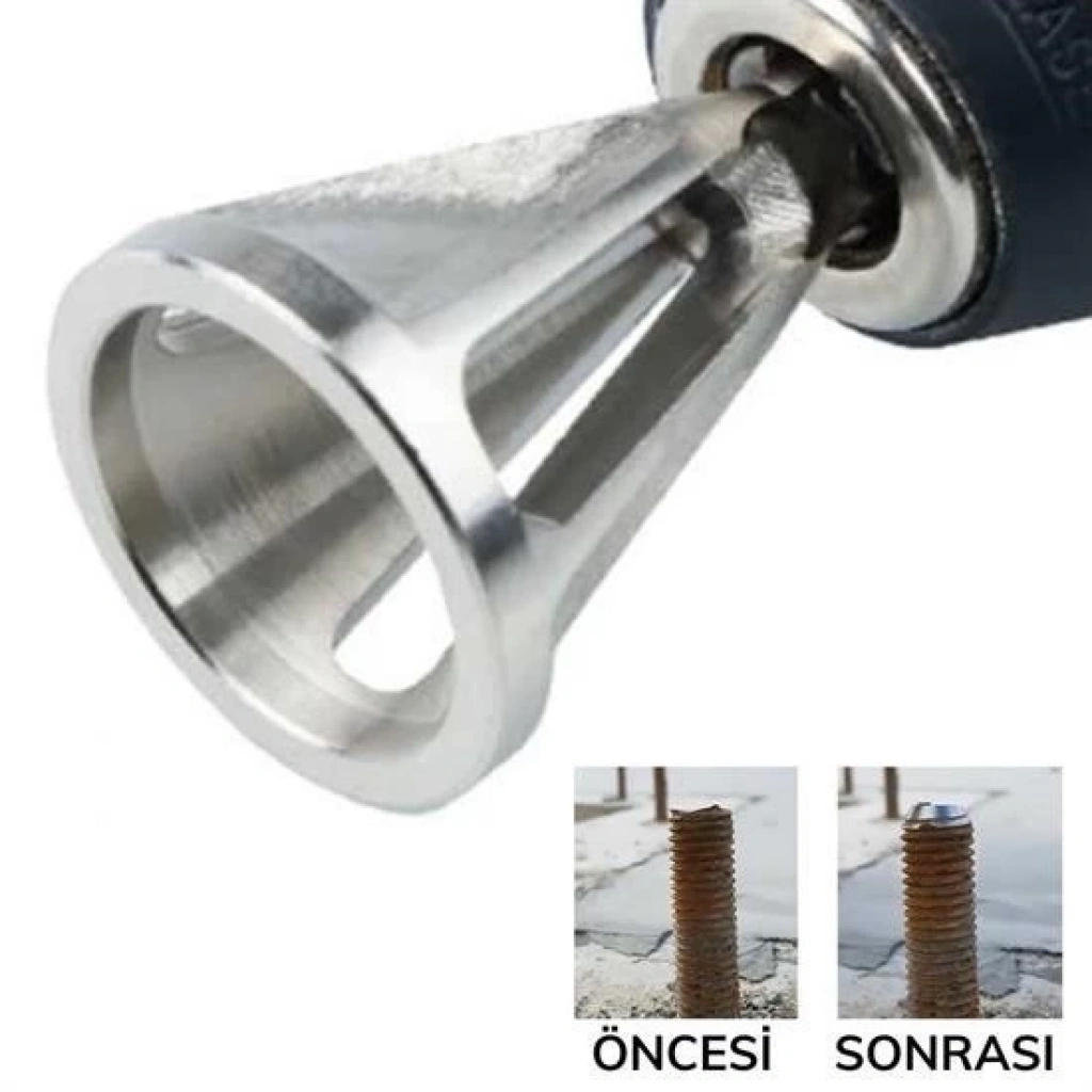 çapak temizleyici ile oldukça kolay bir şekilde cıvatalarınızın ucundaki paslı alanlardan kurtulabilir aynı zamanda hasarlı cıvataları da rahatça onararak daha sağlam somunlar elde edebilirsiniz