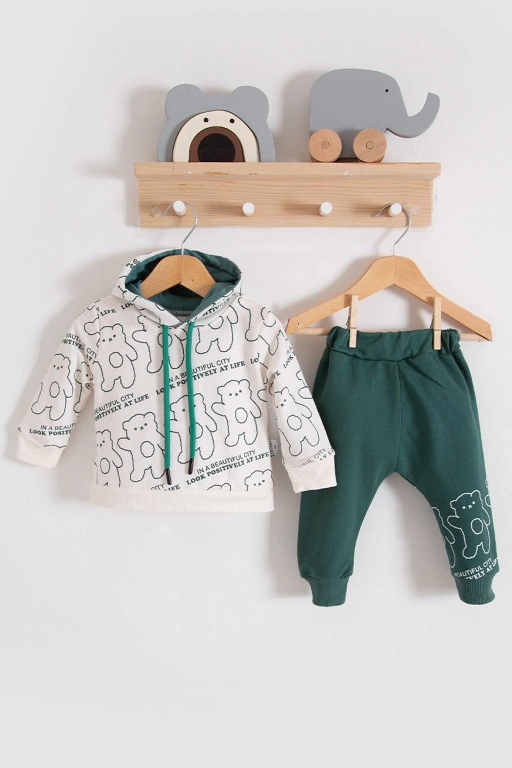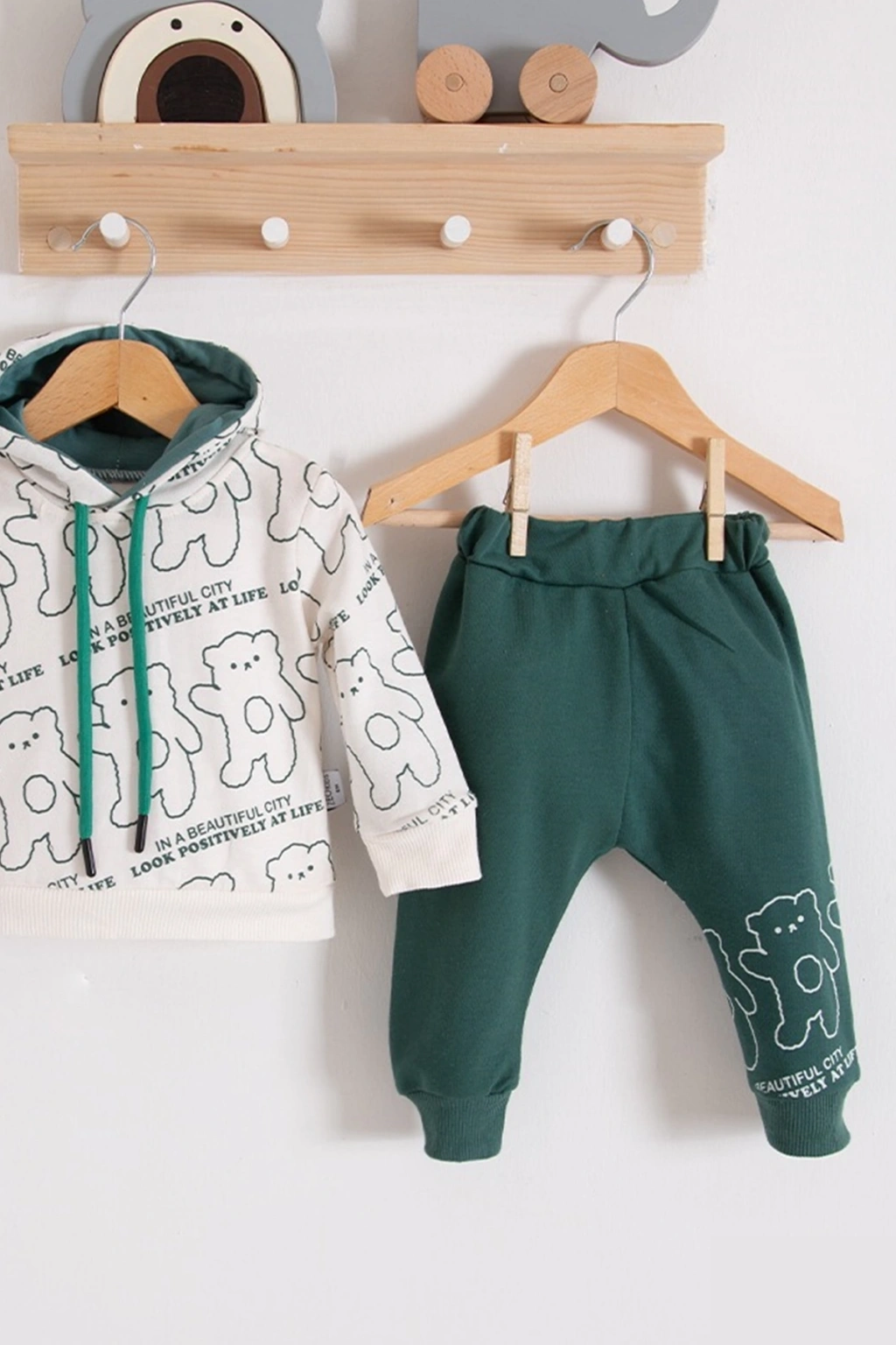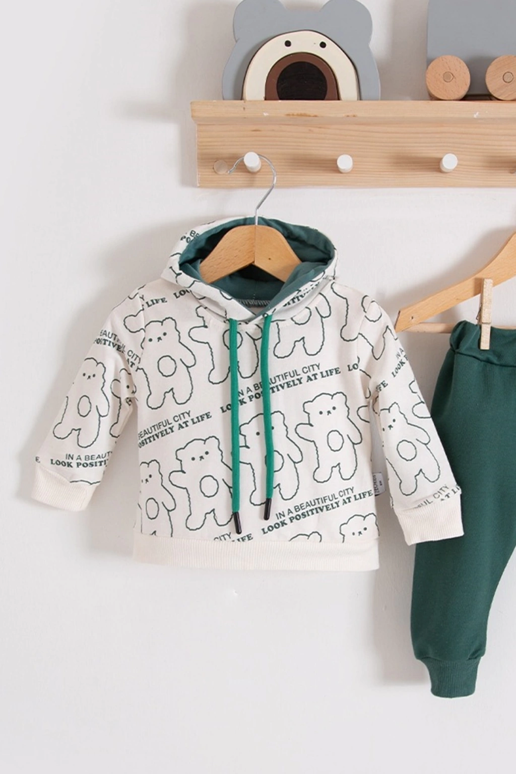 Çapraz Bears Kapüşonlu % 100 Pamuk Erkek Bebek Takımı