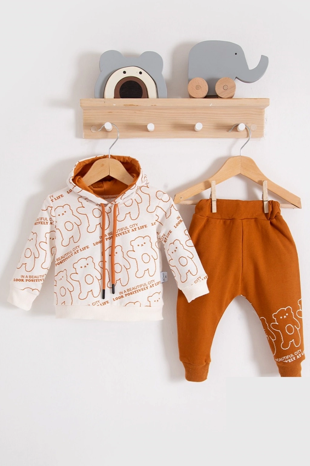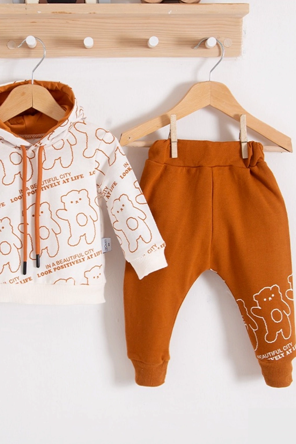 Çapraz Bears Kapüşonlu % 100 Pamuk Erkek Bebek Takımı