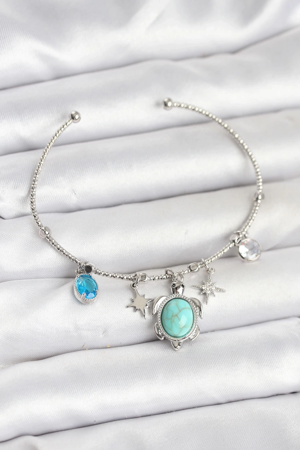 Caretta Caretta Charmlı Gümüş Renk Kadın Bileklik - TJ-BB8034