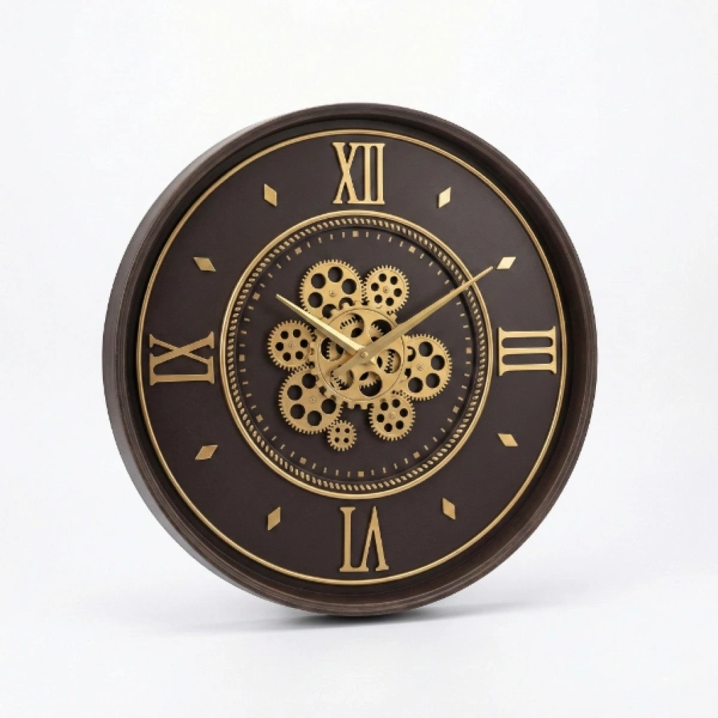 ÇARKLI DUVAR SAATİ 55 CMÜrün Özellikleri55 cm çapındaki çarklı duvar saati, büyük boy ölçüsü ve iç kısmında yer alan detaylı mekanik çark tasarımıyla bulunduğu ortamda güçlü ve dikkat çekici bir dekoratif etki oluşturur. Görselde de net şekilde görülen açık mekanizmalı çark detayı, saate endüstriyel ve vintage tarzı bir karakter kazandırırken, Roma rakamlı kadran yapısı klasik estetik anlayışı modern çizgilerle birleştirir. Altın tonlu çark ve rakam detayları, koyu zeminle kontrast oluşturarak saatin uzaktan bile rahatça okunmasını sağlar. Geniş kadranı sayesinde salon, oturma odası, ofis, kafe, restoran ve loft tarzı mekânlarda dekorasyonun odak noktası haline gelir. Dengeli çalışan saat mekanizması sessiz bir kullanım sunarak yaşam alanlarında konfor sağlar. Sağlam gövde yapısı ve kaliteli malzeme hissi uzun ömürlü kullanım avantajı sunarken, duvara kolayca asılabilen tasarımı ile pratik kurulum imkânı sağlar. Dekorasyonda sıradan saatlerden farklı, prestijli ve karakter sahibi bir ürün arayan kullanıcılar için hem fonksiyonel hem de estetik açıdan güçlü bir tercihtir.Paket İçeriği1 adet Çarklı Duvar Saati 55 cm