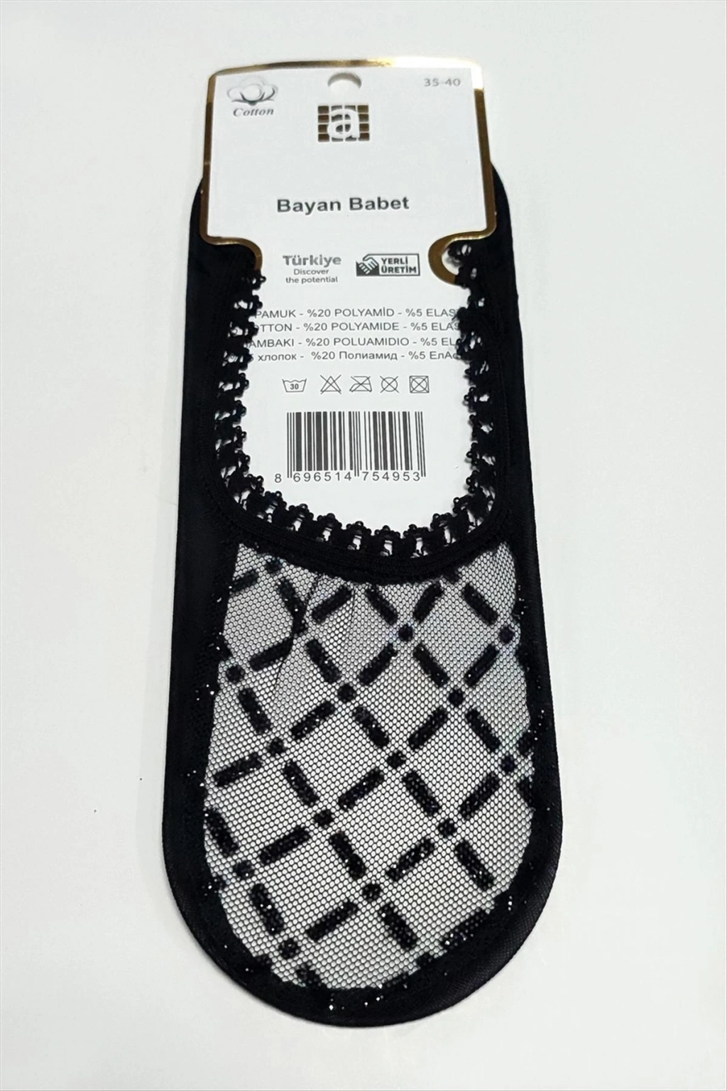 Çorap; Ürün malzemesi dantel kumaştır. Boyu 20 cm ve genişliği 8 cmdir. Ürün numarası 37-42 arasındadır. Ürün flot iran babet olarakta bilinmektedir.