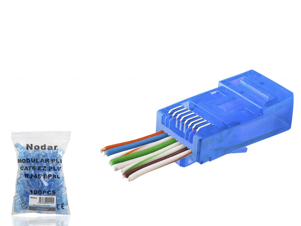 ND2412, Profesyonel Ağ Altyapısı Projelerinde Montaj Verimliliğini Artırmak Ve Hata Oranını Minimuma İndirmek İçin Tasarlanmış Ez (easy) Tipi Delikli RJ45 Konnektör Setidir. Şeffaf Mavi Rengi, Karmaşık Kablo Tesisatlarında Belirli Network Hatlarının (örn: Data Hatları Veya Özel Departman Bağlantıları) Anında Ayırt Edilmesini Sağlar. Ez (pass-through) Teknolojisi Sayesinde Kablo Damarları Konnektörün Ön Ucundan Dışarı Çıkar; Bu Da Çakma İşleminden Önce Renk Dizilimini Kolayca Doğrulamanıza İmkan Tanıyarak Kurulum Hatalarını Tamamen Ortadan Kaldırır.