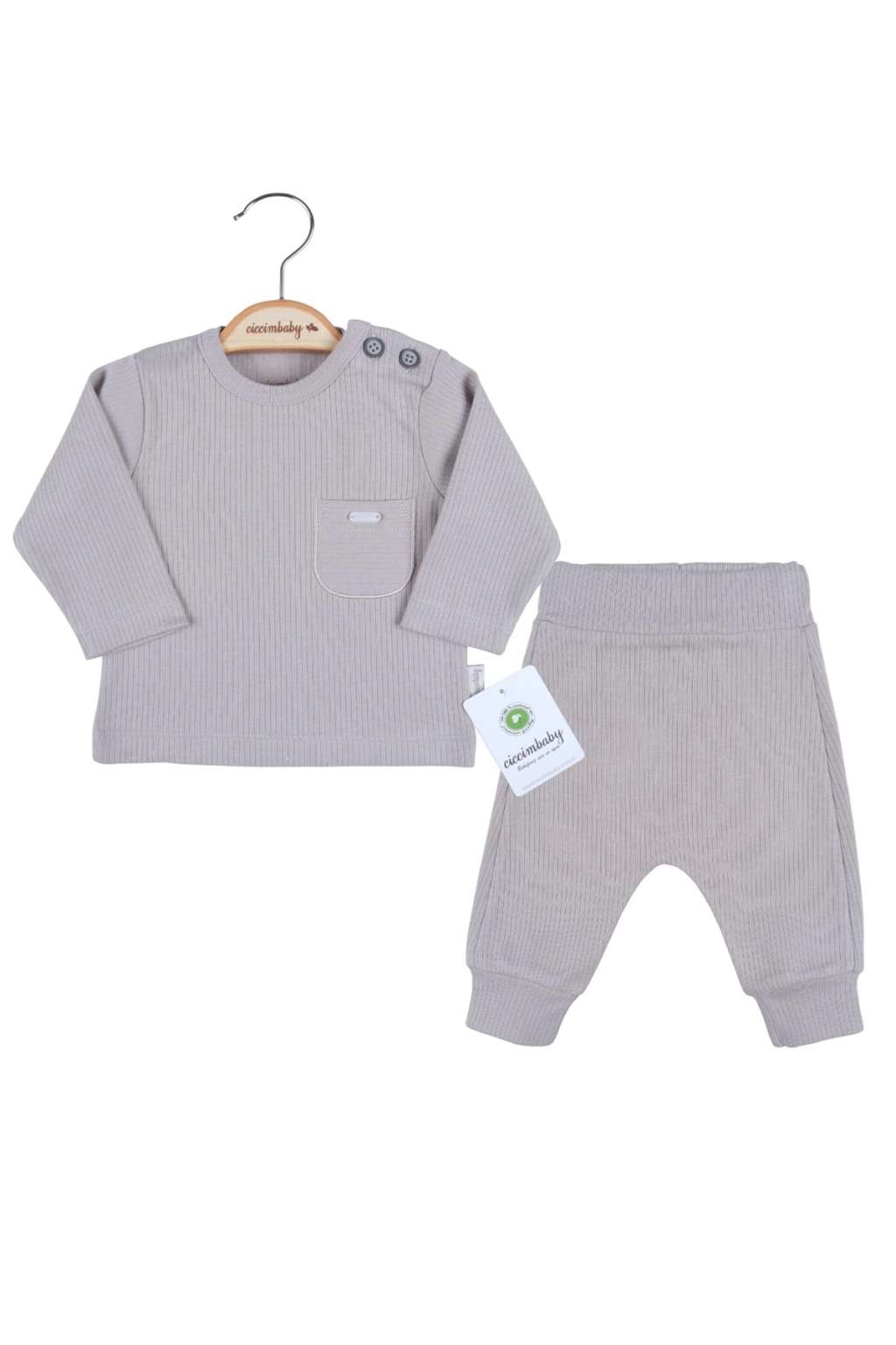 Cep Nakışlı Omuzdan Düğmeli % 100 Pamuk Erkek Bebek Takım