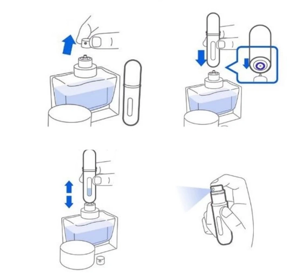 Cep parfüm sprey şişesi cebinize veya çantanıza konacak kadar küçük ve hafiftir.