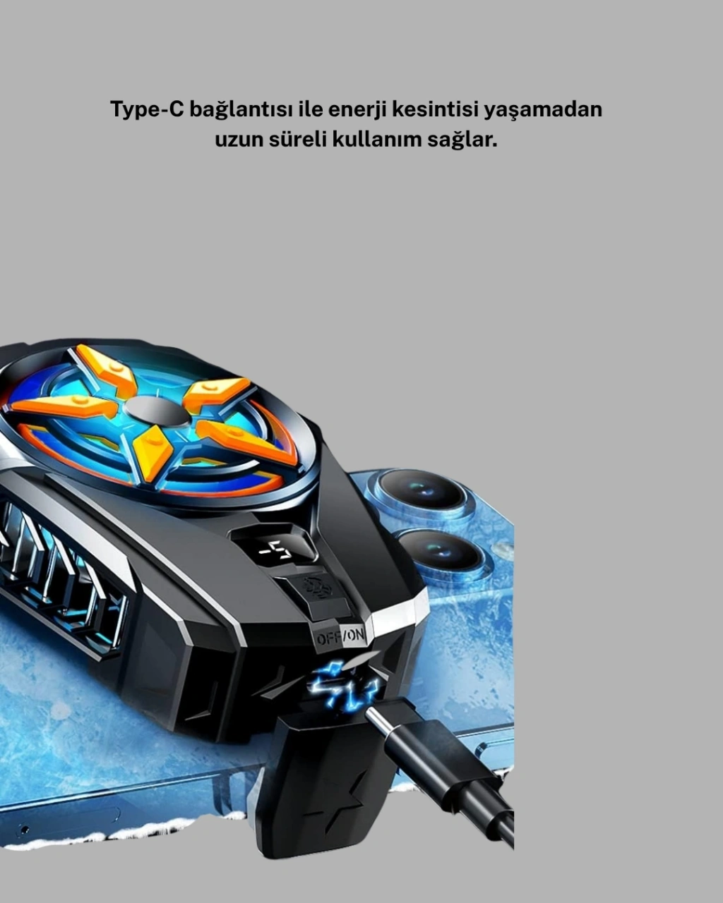 Akıllı telefonunuzu aşırı ısınmadan koruyun!Yüksek grafikli oyunlar, video düzenleme veya canlı yayınlar sırasında telefonunuz ısınarak performans kaybına uğrayabilir. Cep Telefonu Radyatörü, yarı iletken çip teknolojisiyle cihazınızı yalnızca birkaç dakika içinde serinletir.Metal + ABS gövdesi sayesinde hem dayanıklı hem de ultra hafiftir — sadece 65 gram!Ergonomik tasarımı, 65-85 mm genişliğindeki tüm telefonlarla mükemmel uyum sağlar.Type-C bağlantısı sayesinde enerji kesintisi olmadan uzun süreli soğutma sunar.2 kademeli hız ayarı ile ihtiyaçlarınıza göre hava akışını ayarlayabilir, dijital ekran kontrolü ile sıcaklığı anlık olarak izleyebilirsiniz.Gelişmiş hava akışı sistemi, cihazınızın bataryasını korur ve performansını sabit tutar.Hem profesyonel oyuncular hem de yoğun telefon kullanıcıları için mükemmel bir çözümdür.Artık telefonunuz ne kadar yoğun çalışırsa çalışsın, her zaman serin kalır!