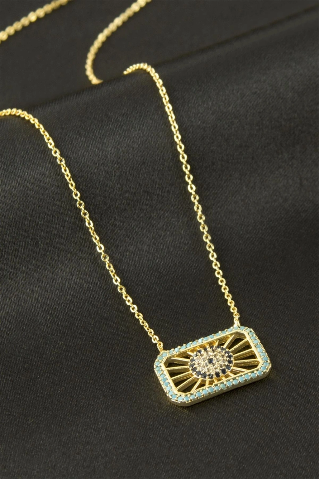 Çerçeve Nazar Zirkon Taşlı Kolye