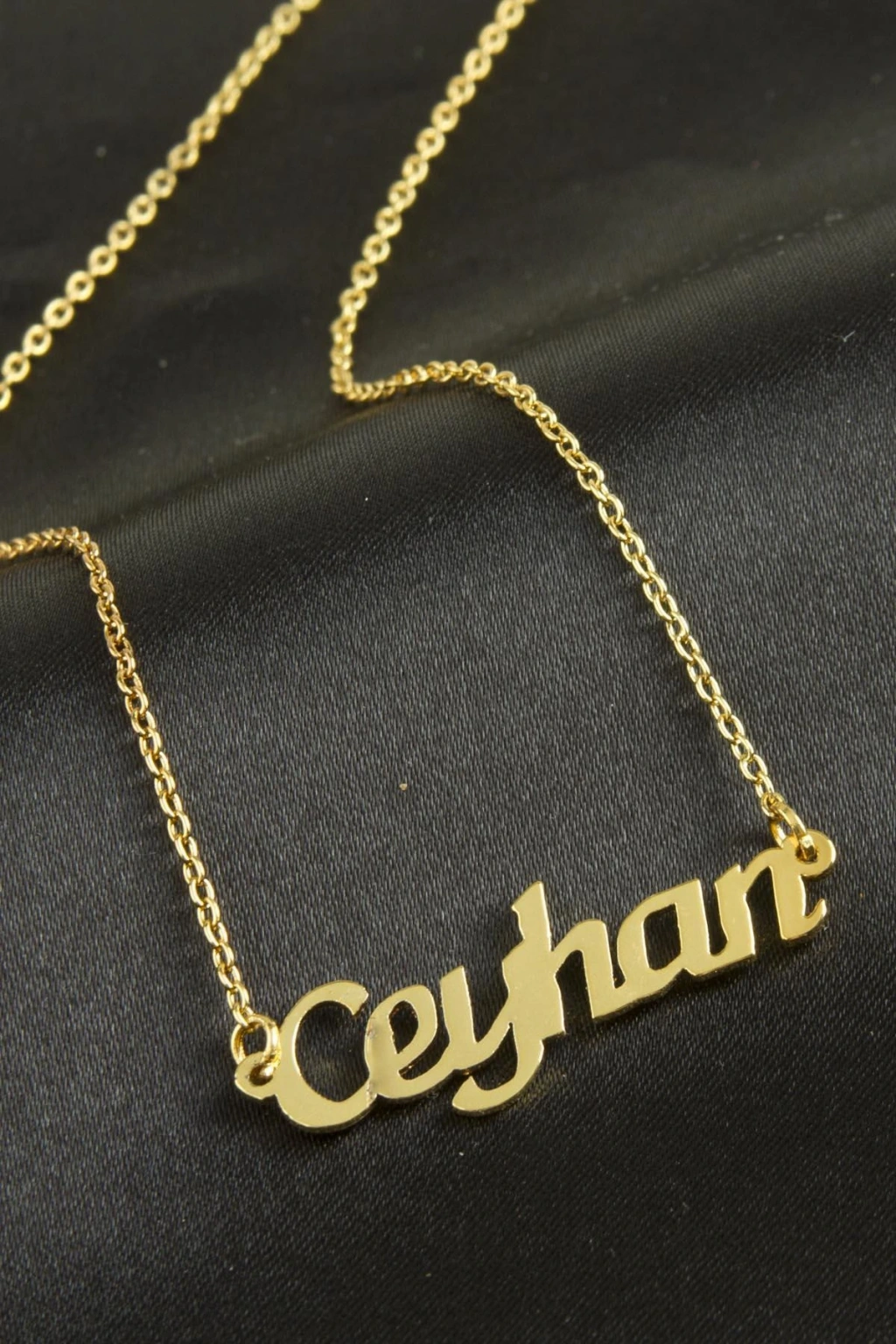 Ceyhan isimli kolye. İsimli kolye pirinç madeninden ve altın kaplamalıdır. Kişiye özel üretilmektedir.Yazdırmak istediğiniz ismi bize mesaj olarak iletmeniz gerekmektedir. Kullanıma bağlı olarak uzun süre kullanıma uygundur. Ürün malzemesi 1.sınıf kalitededir. Ürün ve zinciri sarı renktedir. Ürün zincir boyu 45 cm ve ürün üzerindeki isimler yaklaşık 3 cmdir. İsim boyları ürün ismine göre degişiklik göstermektedir.
