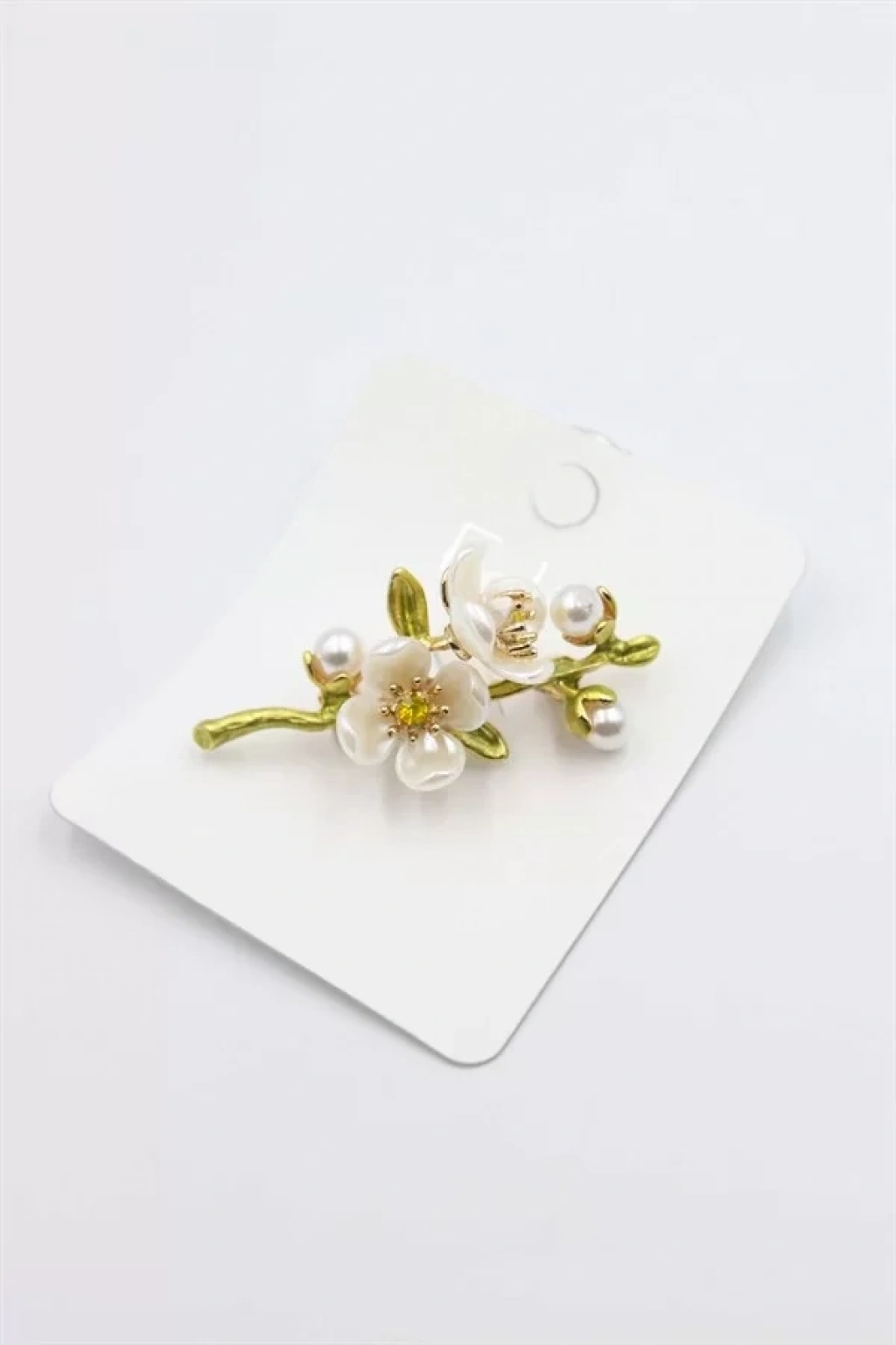Çiçek Dalı Broş - Beyaz