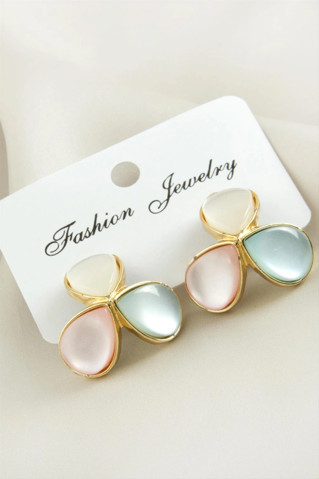 Küpe; Ürün malzemesi metal ve sedef taşlıdır. Ürün boyu 2,5 cmdir. 1 sınıf kaliteli malzemeden üretilmiştir. Kartlıdır.
