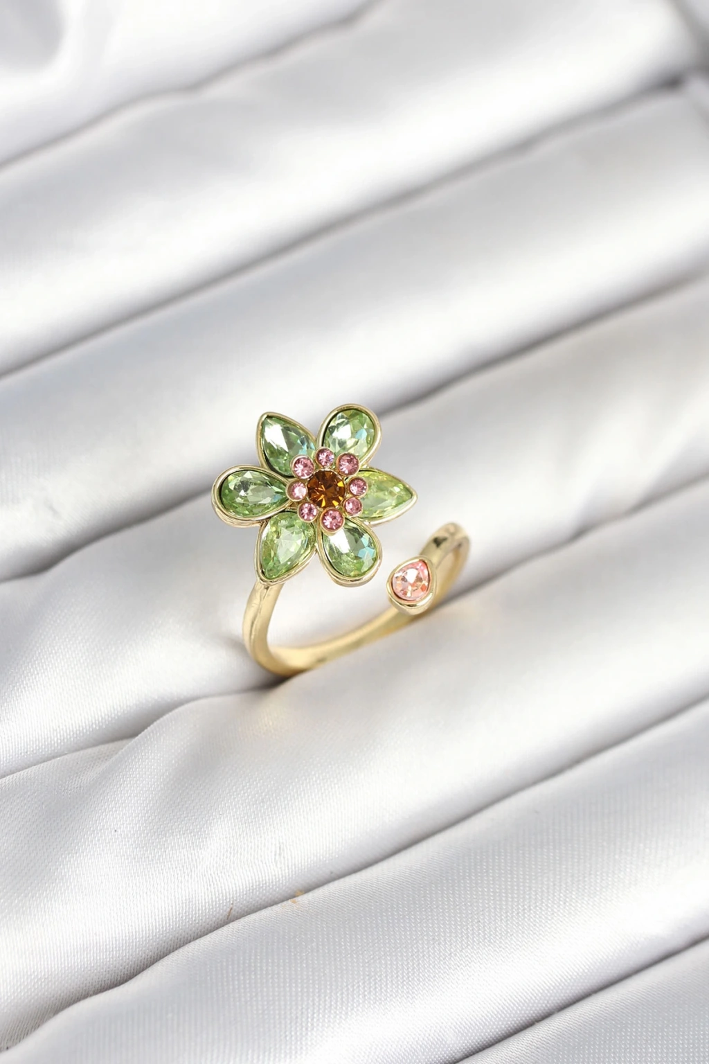 Çiçek Model Yeşil Pirinç Gold Renk Yüzük - TJ-BYK3901