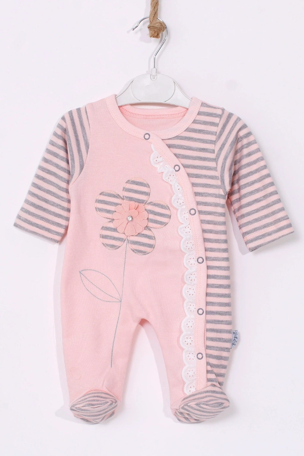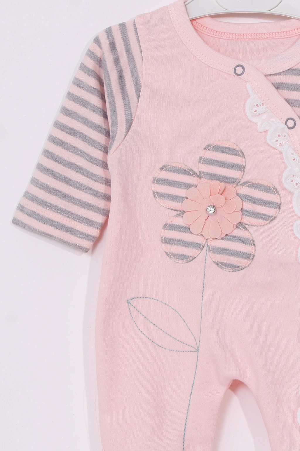 Çiçek Nakışlı % 100 Pamuk Ayaklı Kız Bebek Tulumu