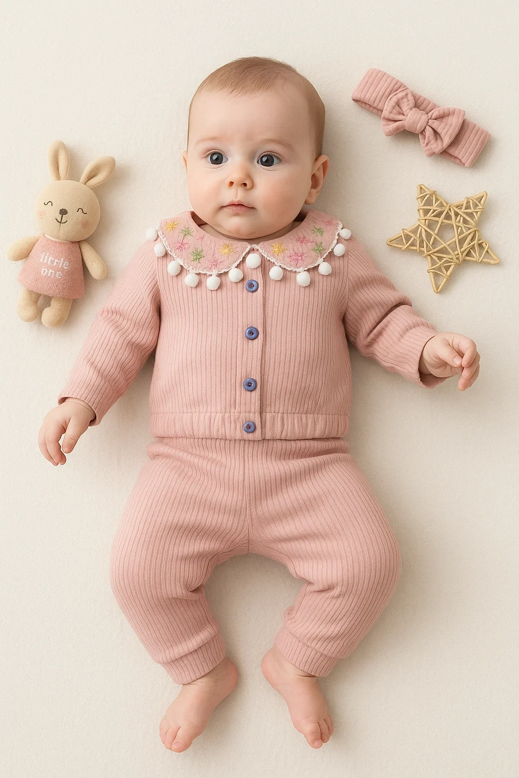 Babydonat Peluş Hırkalı 3 Lü Kız Bebek Takım