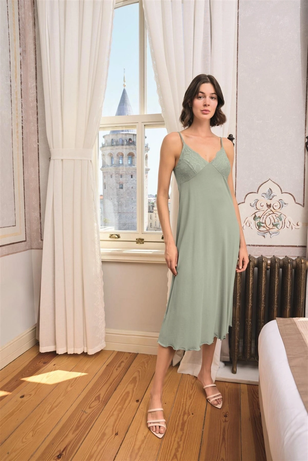 Yaprak Desenli Dantelli Ve Dekolteli Sabahlık Takımı