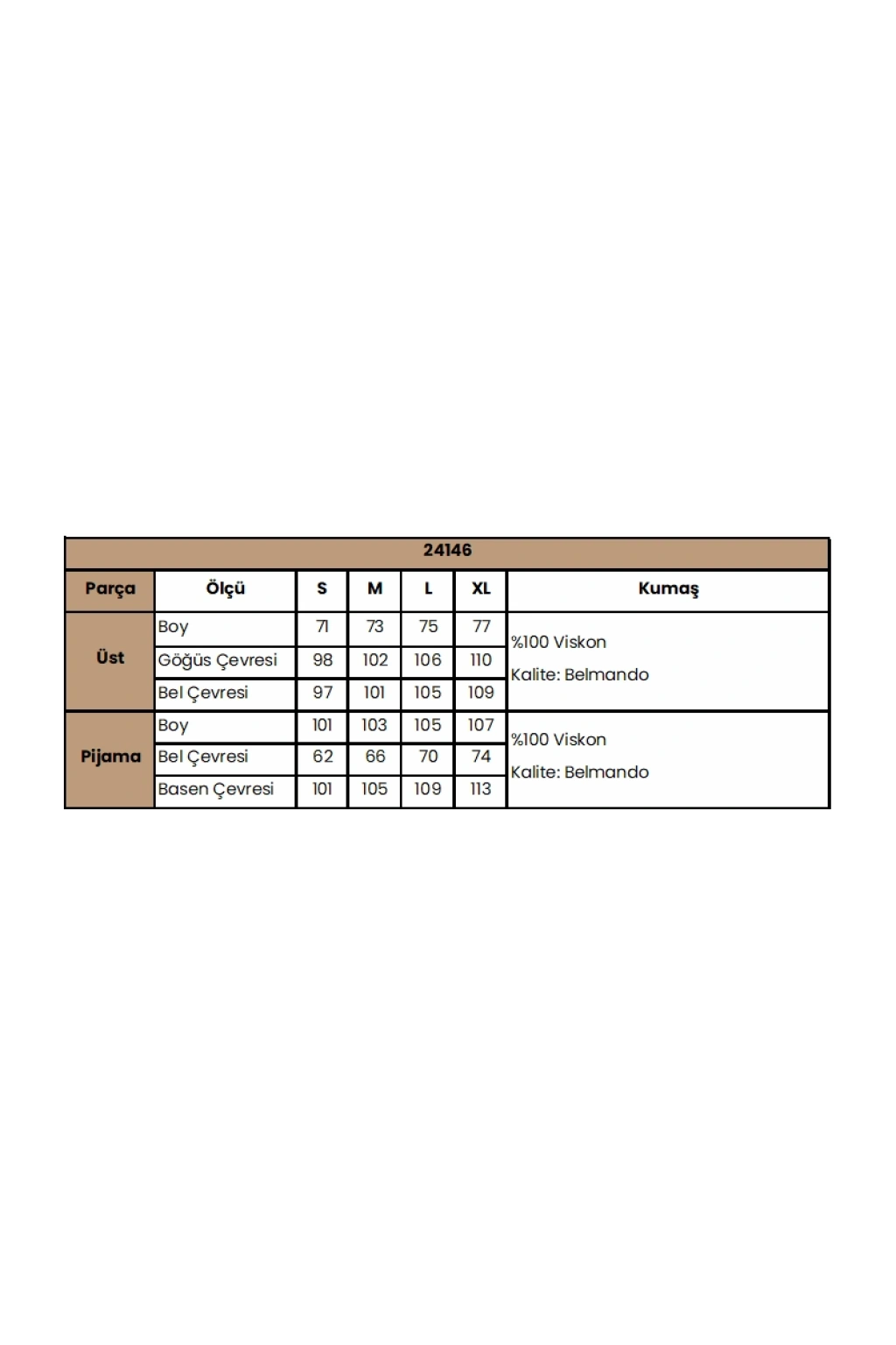 Yaprak Desenli Ve Dantelli 3'lü Pijama Takımı