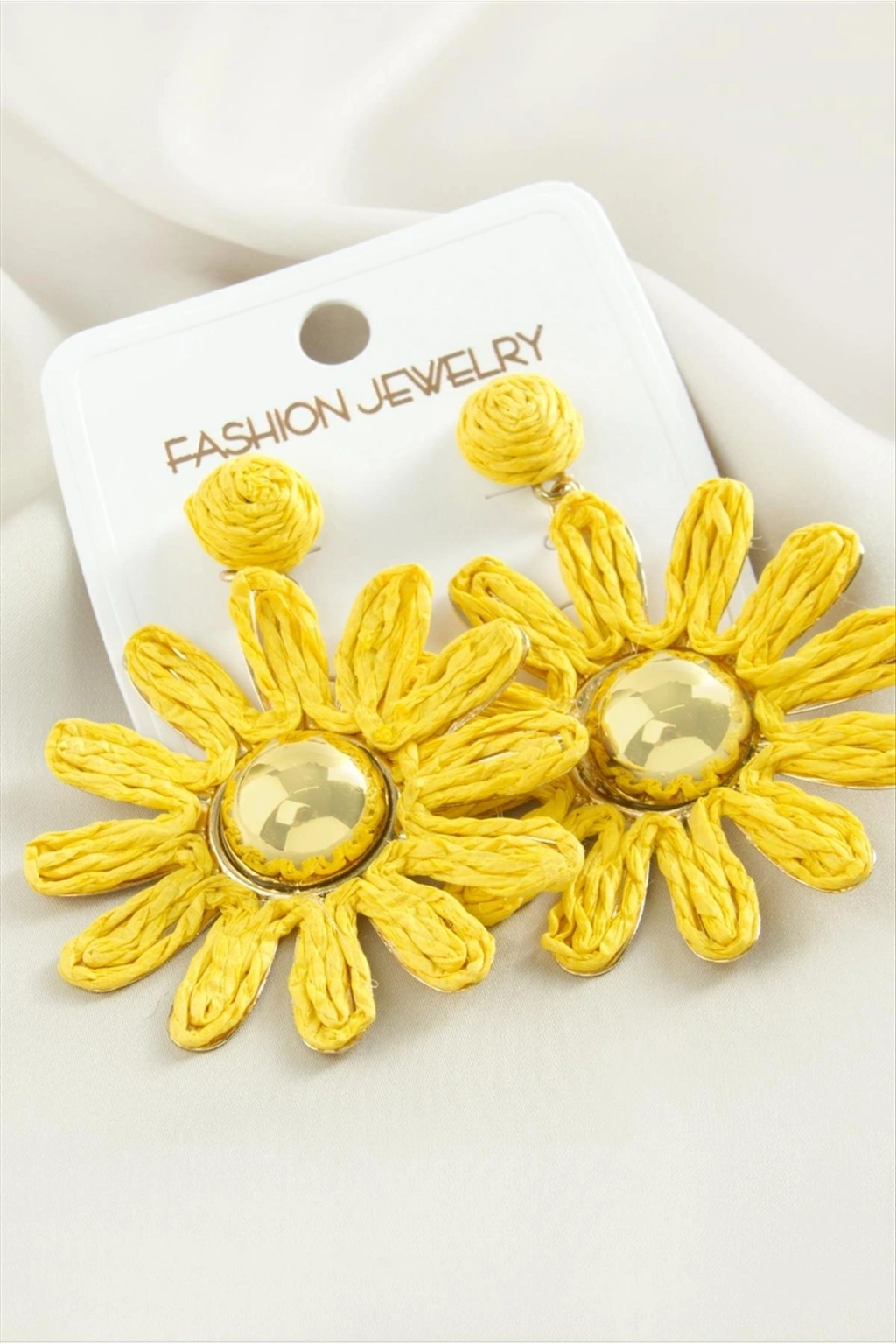 Küpe; Ürün malzemesi metal üzeri hasır kaplamadır. Ürün boyu 7 cmdir. Kartlı ve paketiyle beraber gönderilecektir.