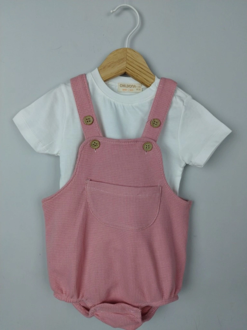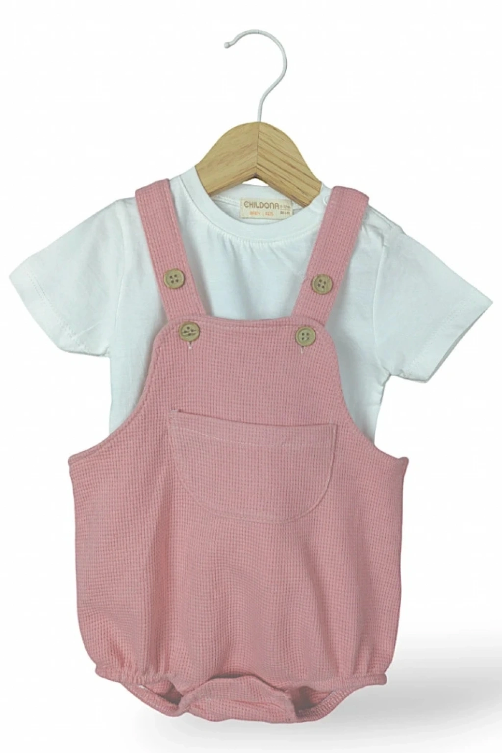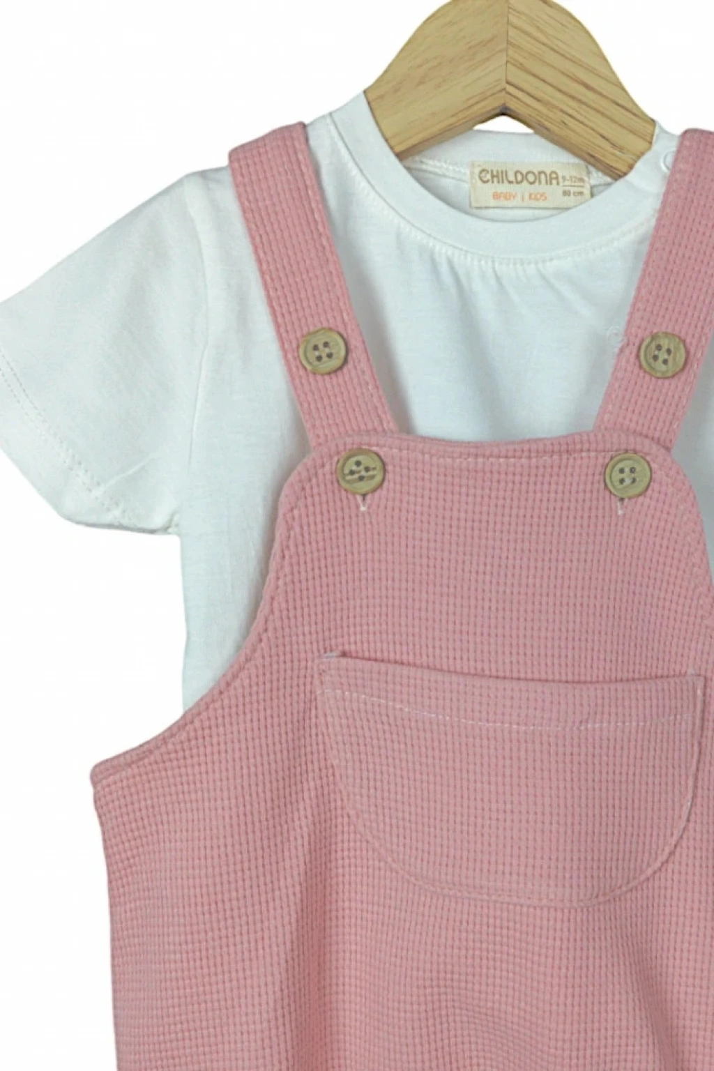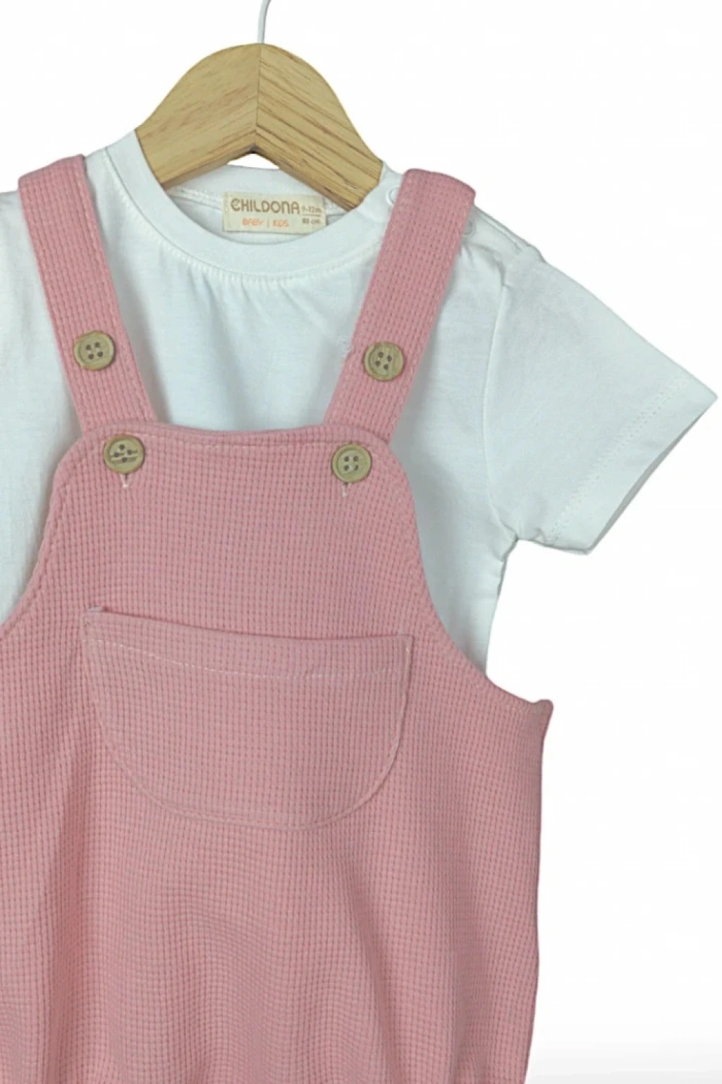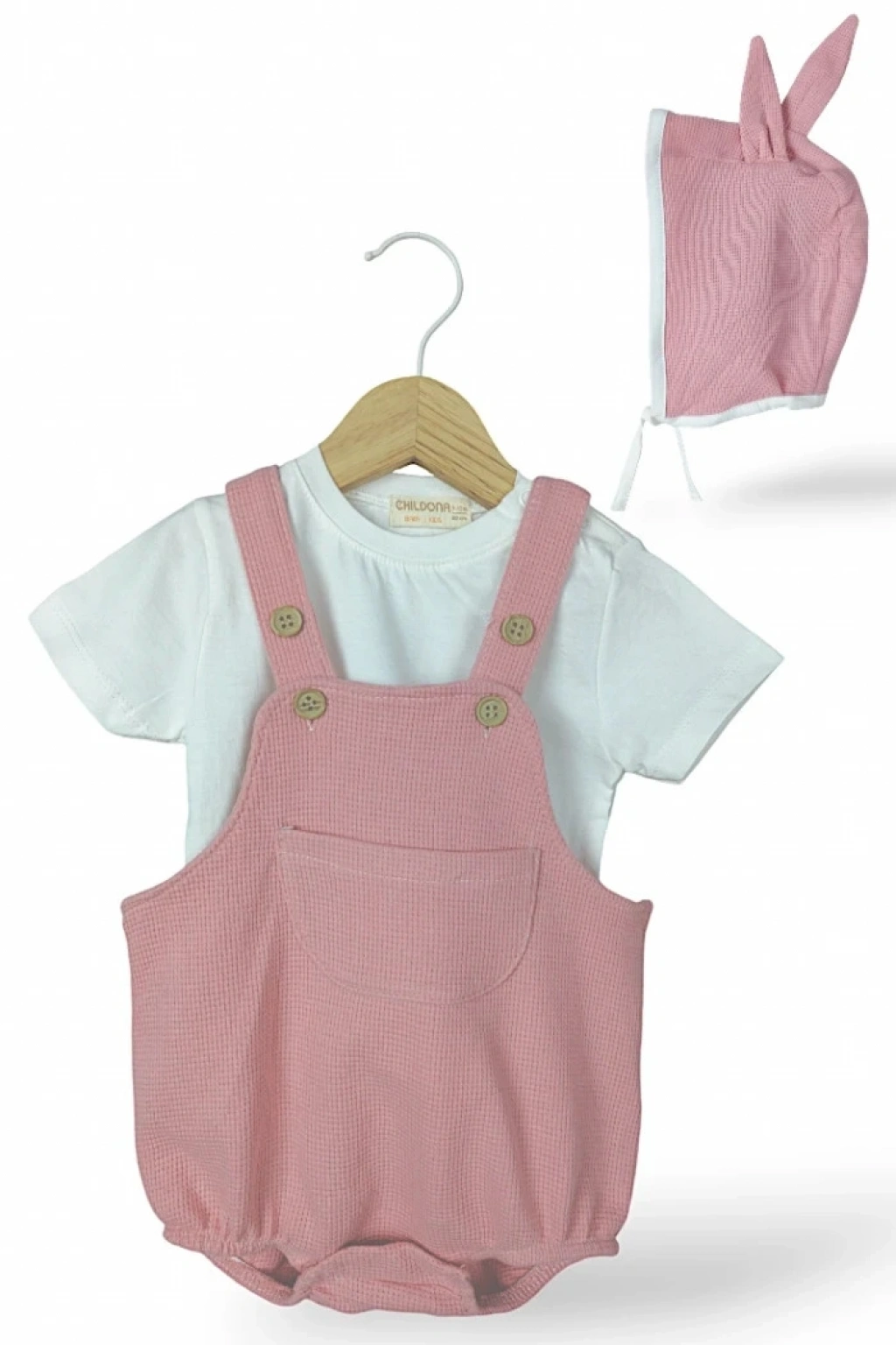 Çıçıtlı Zıbın ve Body Şapkalı Pamuklu Cepli 3lü Günlük Kız Çocuk Salopet Tulum