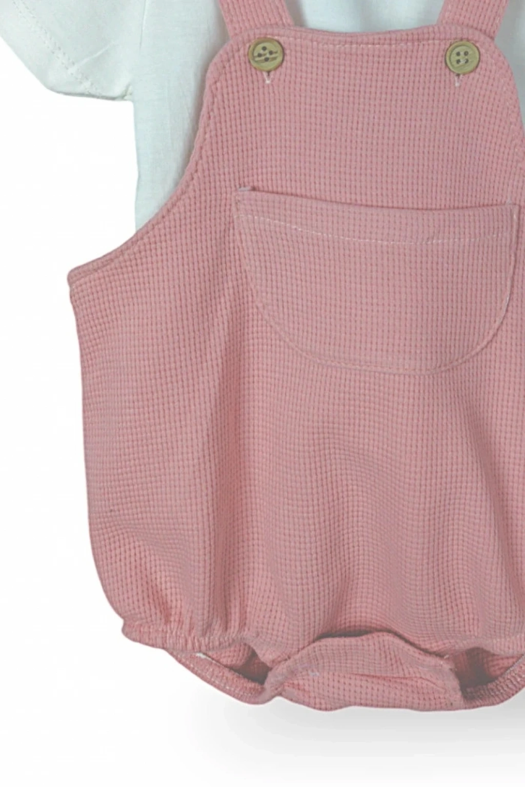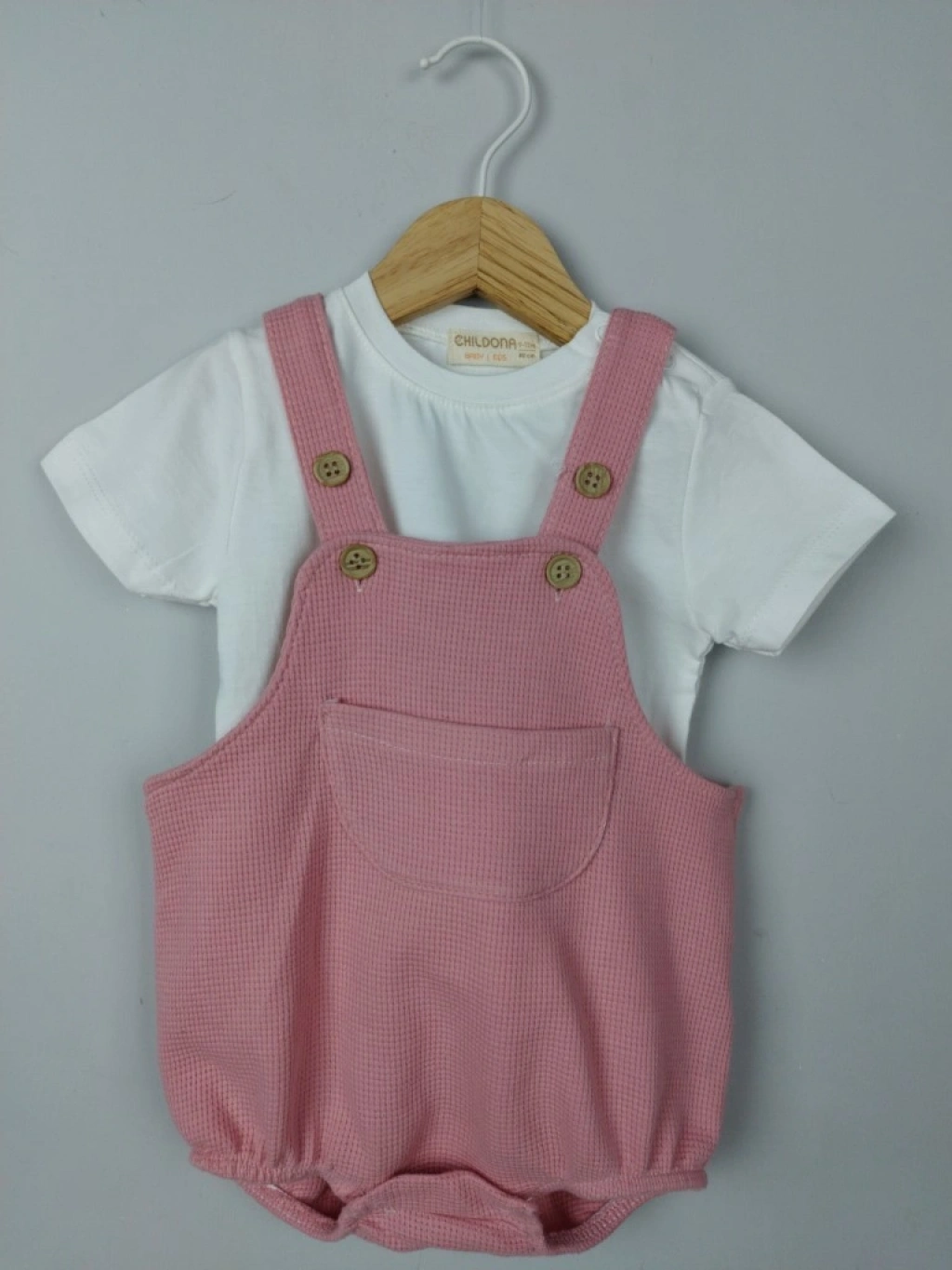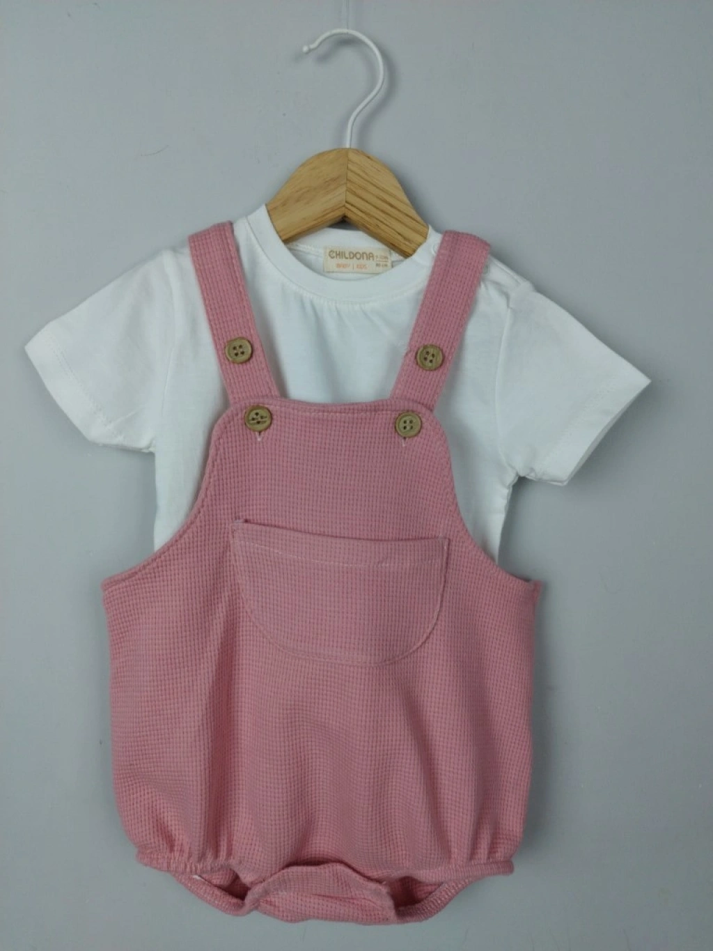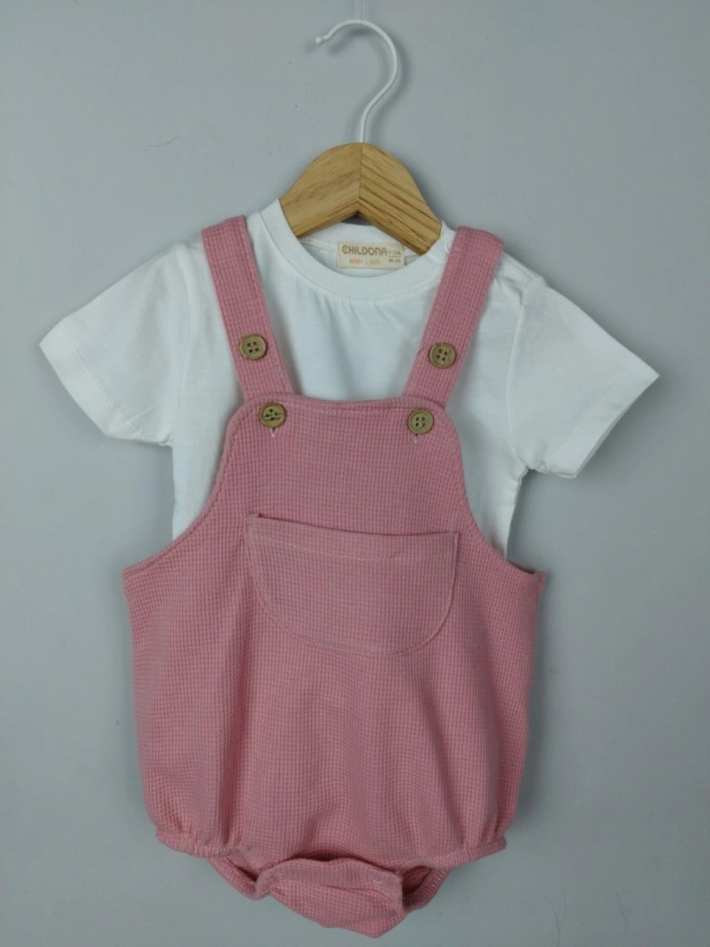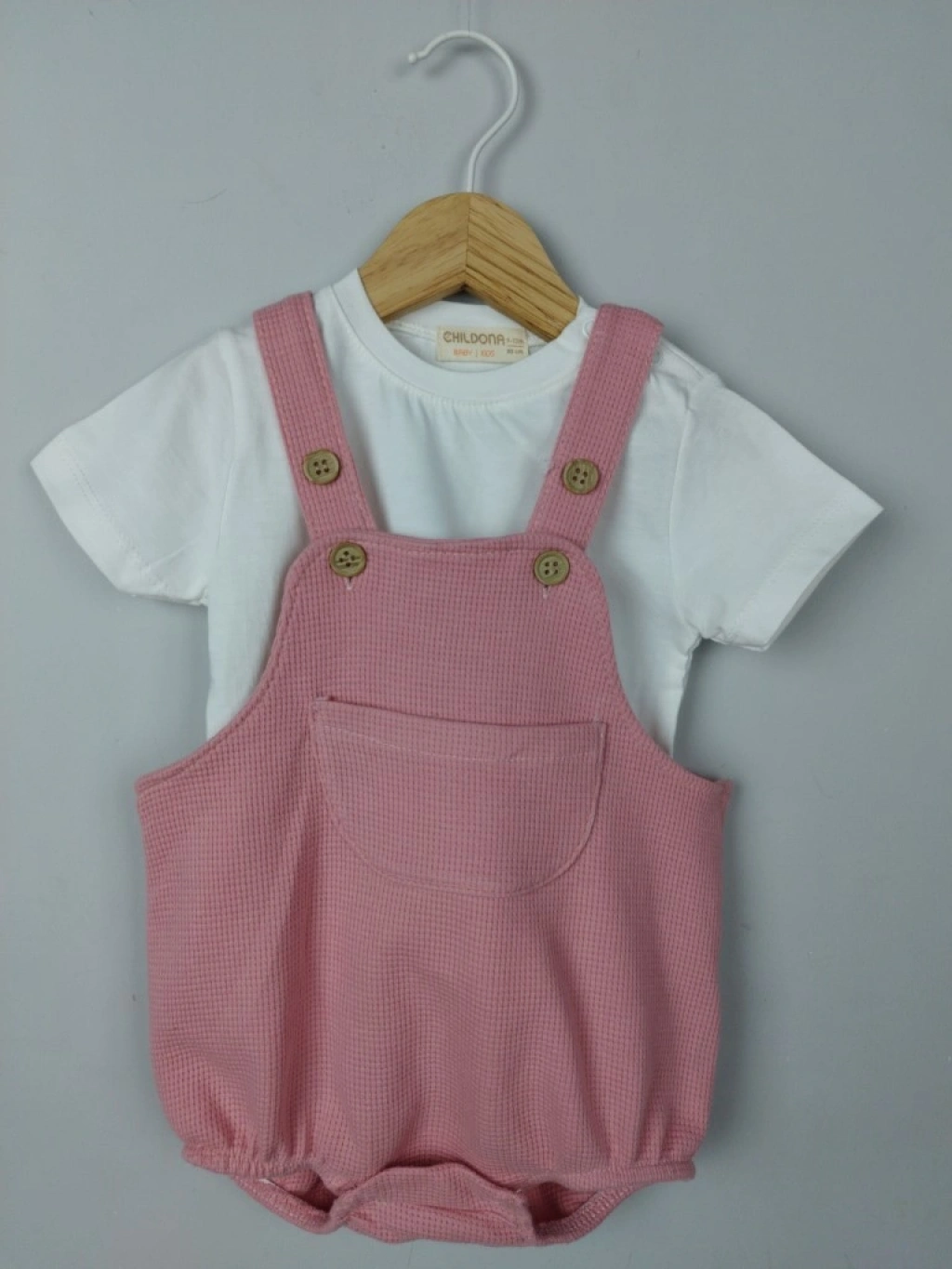 Çıçıtlı Zıbın ve Body Şapkalı Pamuklu Cepli 3lü Günlük Kız Çocuk Salopet Tulum