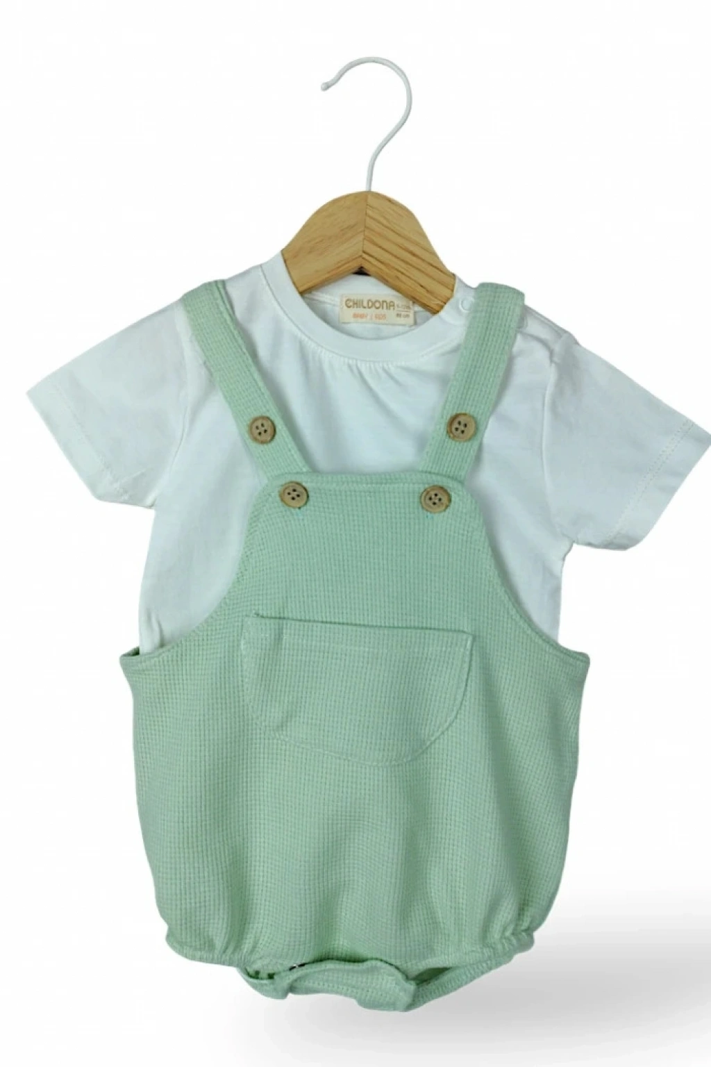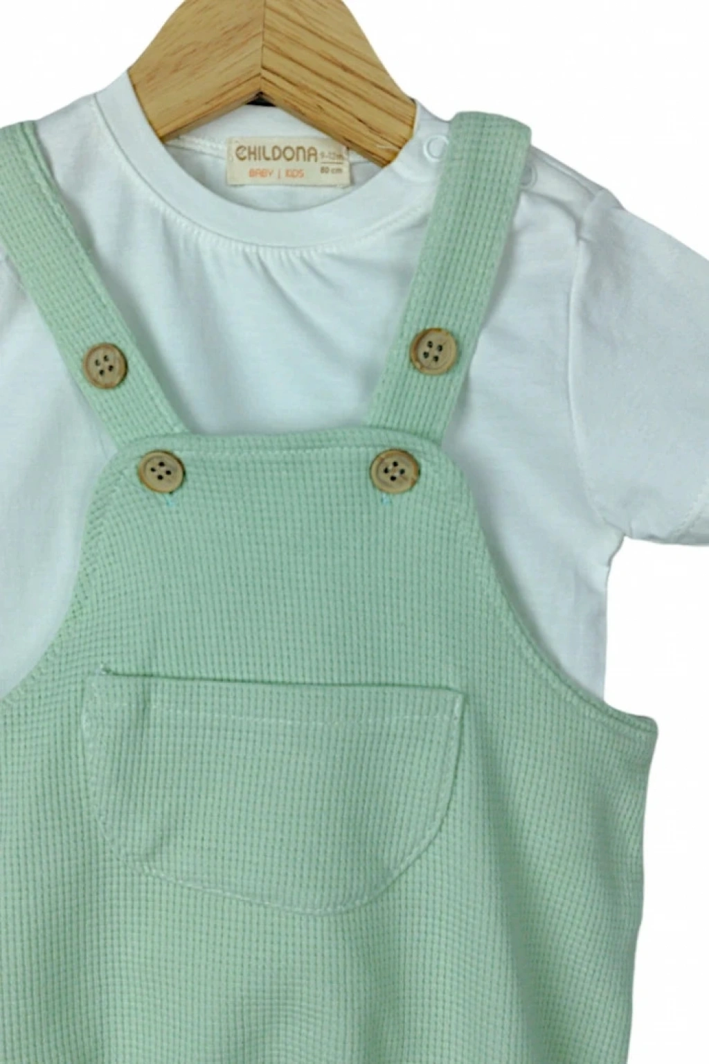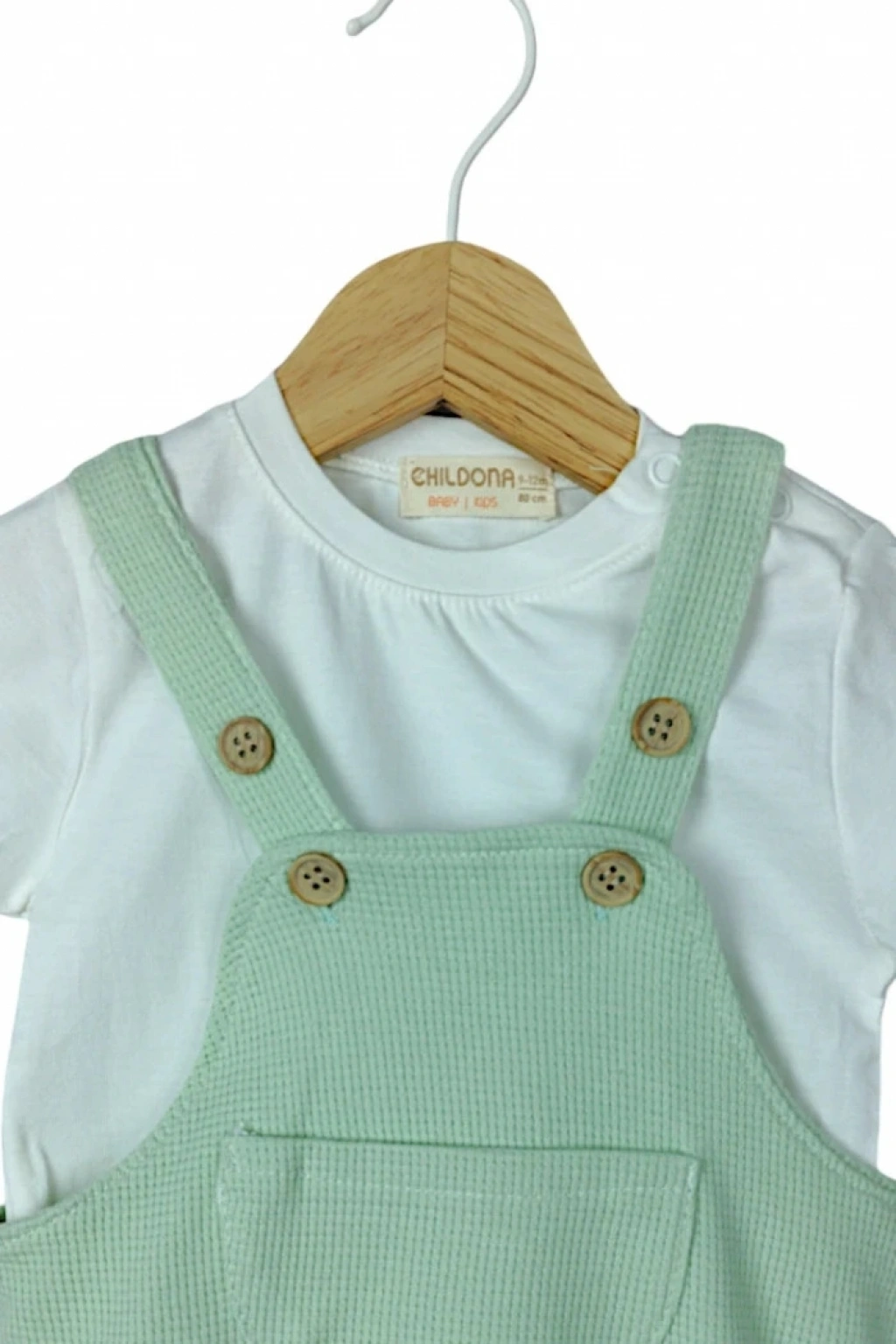 Çıçıtlı Zıbın ve Body Şapkalı Pamuklu Cepli 3lü Günlük Kız Çocuk Salopet Tulum