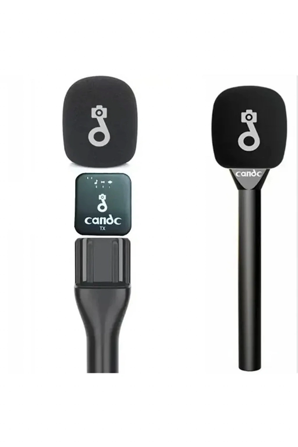 bir kablosuz mikrofon sistemi olan Candc Çift Mikrofonlu Kablosuz Röportaj Mikrofonu