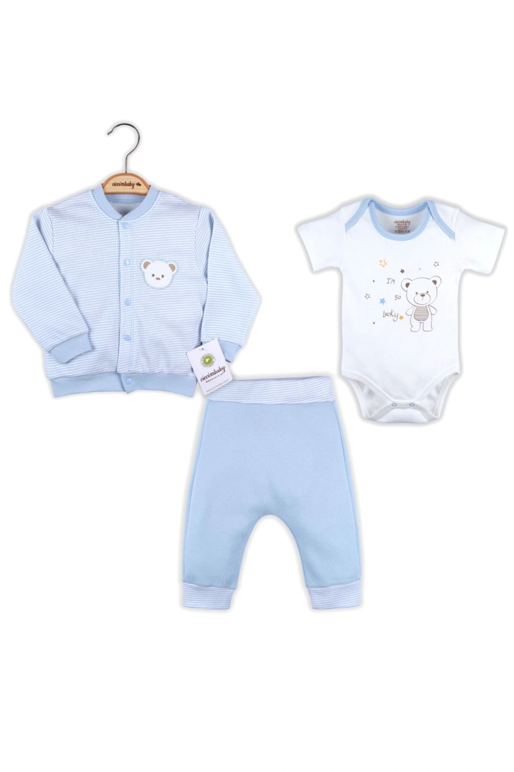 Çizgili Bear Hırkalı % 100 Pamuk Erkek Bebek Takım