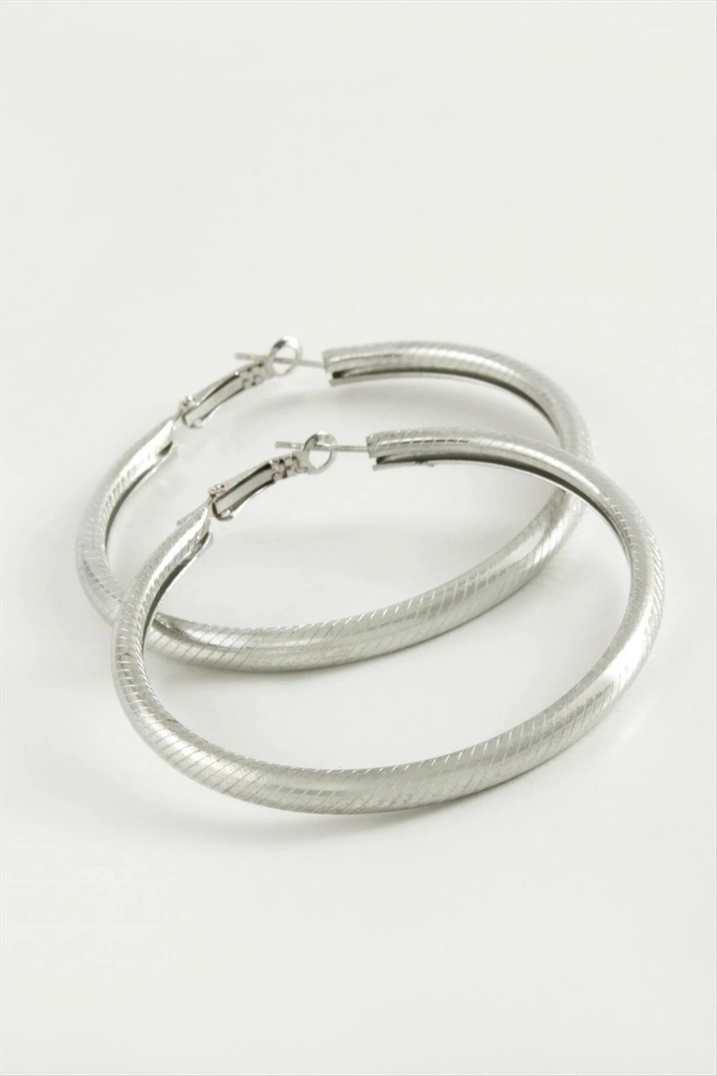 Küpe; Ürün malzemesi metaldir. Küpe halka çapı 5,5 cmdir. Kartlıdır.
