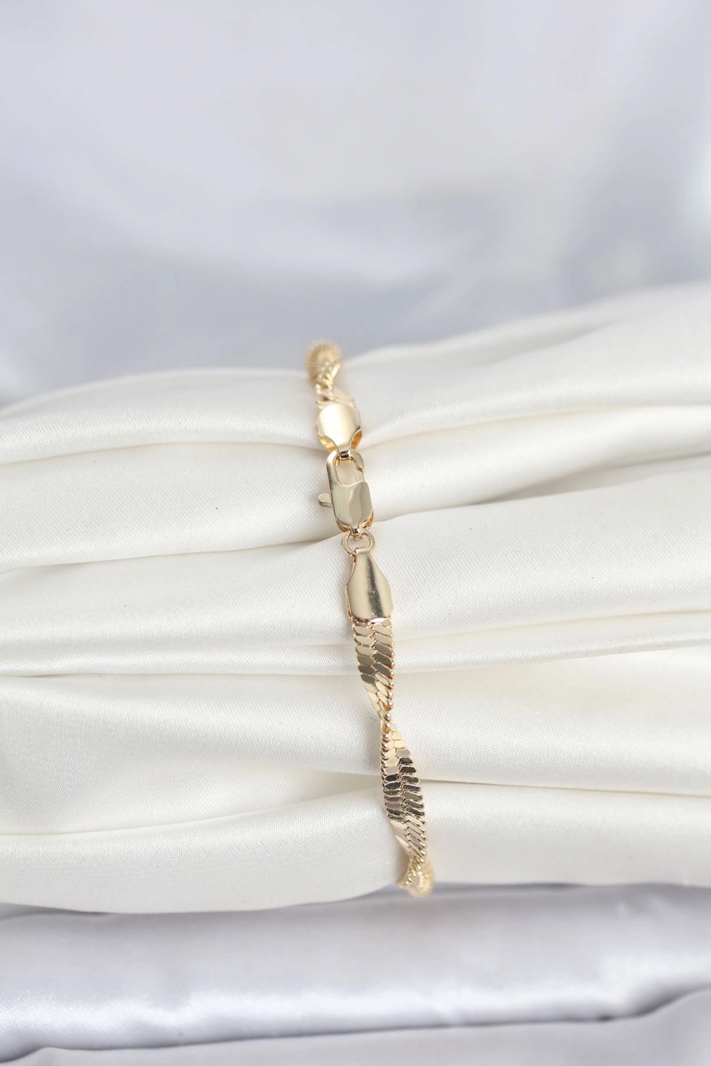 CM 14K Gold Renk Zincir Kalın Yassı Ezme Burgu Model Kadın Bileklik - TJ-BB8301